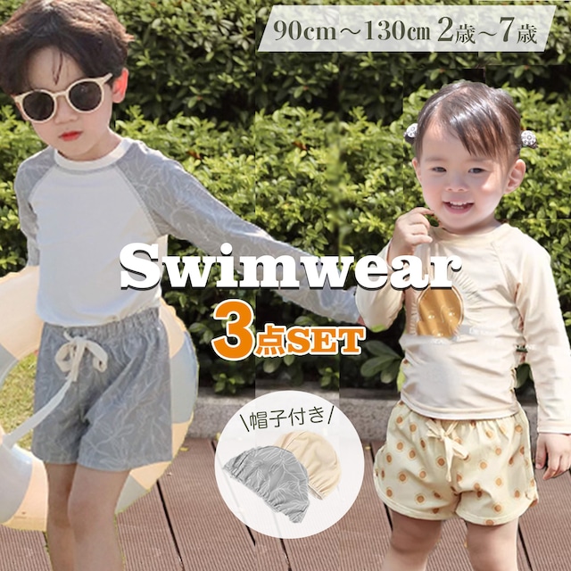 --------------商品仕様-------------- 〇サイズ 90/100/110/120/130 〇バリエーション 2種類×5サイズ グレー/イエロー 〇素材 トップス、スイム帽子:84%ポリエステル、16%スパンデックス(グレー、イエロー共通) パンツ:84%ポリエステル、16%スパンデックス(グレー)、100%ポリエステル(イエロー) 〇重量 約70kg 〇セット内容 ラッシュガード上着、パンツ、スイム帽子 〇お手入れ方法 30度以下の水温で、洗濯機「弱」でお洗濯ください。乾燥機不可。 〇ご注意 ご使用のモニター環境により色味が異なる場合がございます。 海外製品の為、糸のほつれや縫製があまい箇所が見られる場合がございます。ご了承ください。 --------------商品説明-------------- 【シンプルだけどかわいい、スイムウェア3点セット。】 落ち着いたグレー、やわらかいクリーム色に近いイエローの2色展開で男の子も女の子も着られるデザインにしました。 3点セットなのでコーディネートの必要がなく、どこでも使えます。 【上下セパレートタイプなのでお着替えやトイレがラクチン。】 パンツのウエストは紐で縛るタイプなので、ズレ落ちの心配がありません。 また、上下セパレートタイプなのでお着替えやおトイレ、おむつ替えがしやすくなってます。 【UVカット率90%以上。】 夏の日差しや日焼けからお子さまのお肌を守ります。 トップスは長袖なので、日焼けだけでなく怪我からも守ってくれます。 【選べる2つの素材】 パンツの仕様は、グレーとイエローで違います。 イエローの方がシャカシャカ素材のハーフパンツ。グレーは上着と同じ、体にフィットしやすい素材。 お子様に合わせてお好きなタイプをお選びください♪ 【海やプール、水辺のレジャーにお役立ちします♪】 スイムウェアには伸縮性・速乾性がある素材を採用。 濡れていても脱ぎ着がしやすく乾きやすいのでレジャーに大活躍です♪