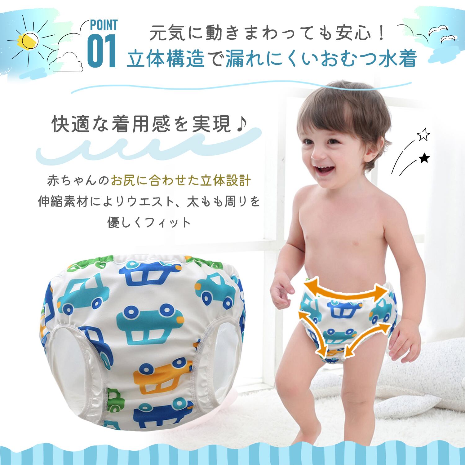 【元気に動きまわっても安心! 立体構造で漏れにくいおむつ水着】