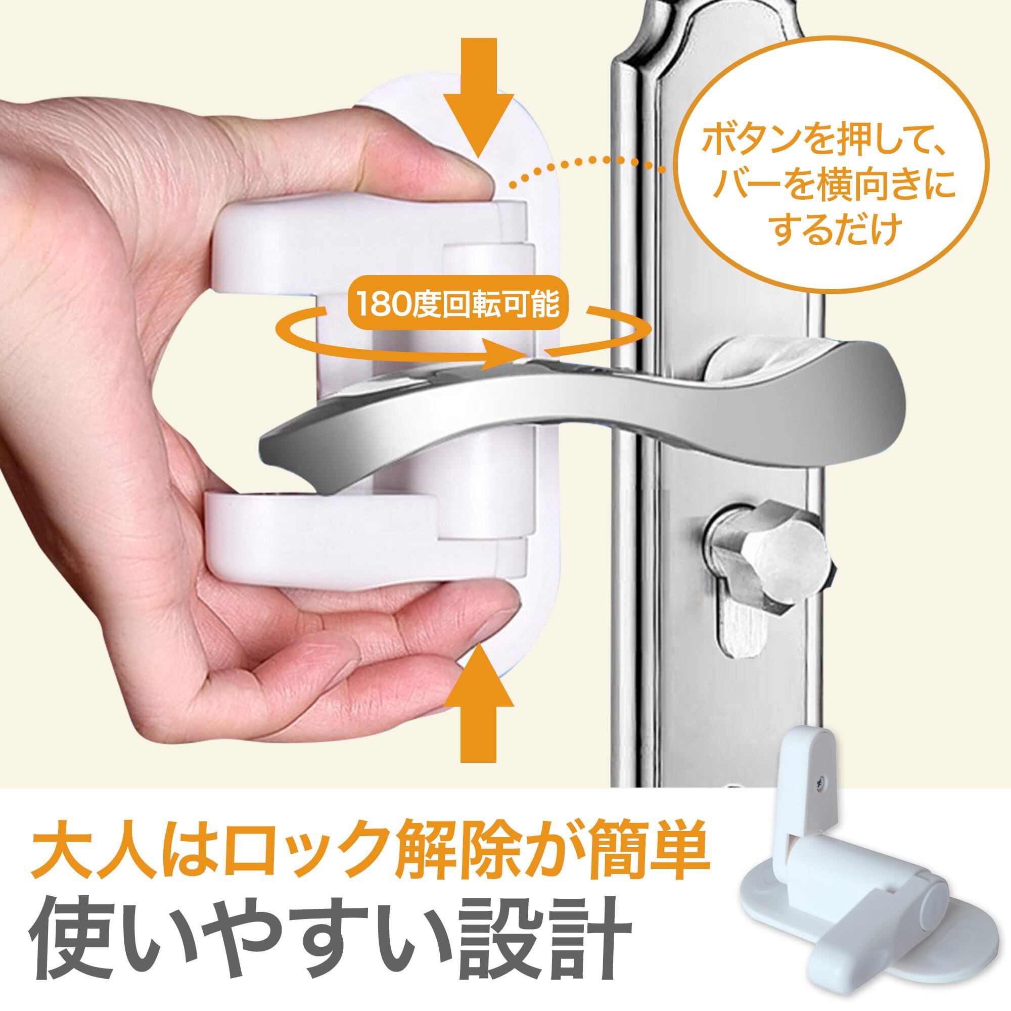 【お子様やペットの安全を守る】お子様やペットが勝手にドアを開けてしまうことを防ぐ、ドアノブ用のチャイルドロック。窓ハンドルや水回りの止水栓など様々な場所に設置でき、お子様やペットを思わぬ事故から守ります。