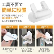 【お子様やペットの安全を守る】お子様やペットが勝手にドアを開けてしまうことを防ぐ、ドアノブ用のチャイルドロック。窓ハンドルや水回りの止水栓など様々な場所に設置でき、お子様やペットを思わぬ事故から守ります。
