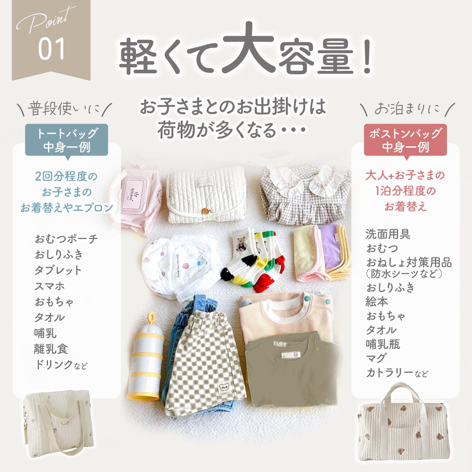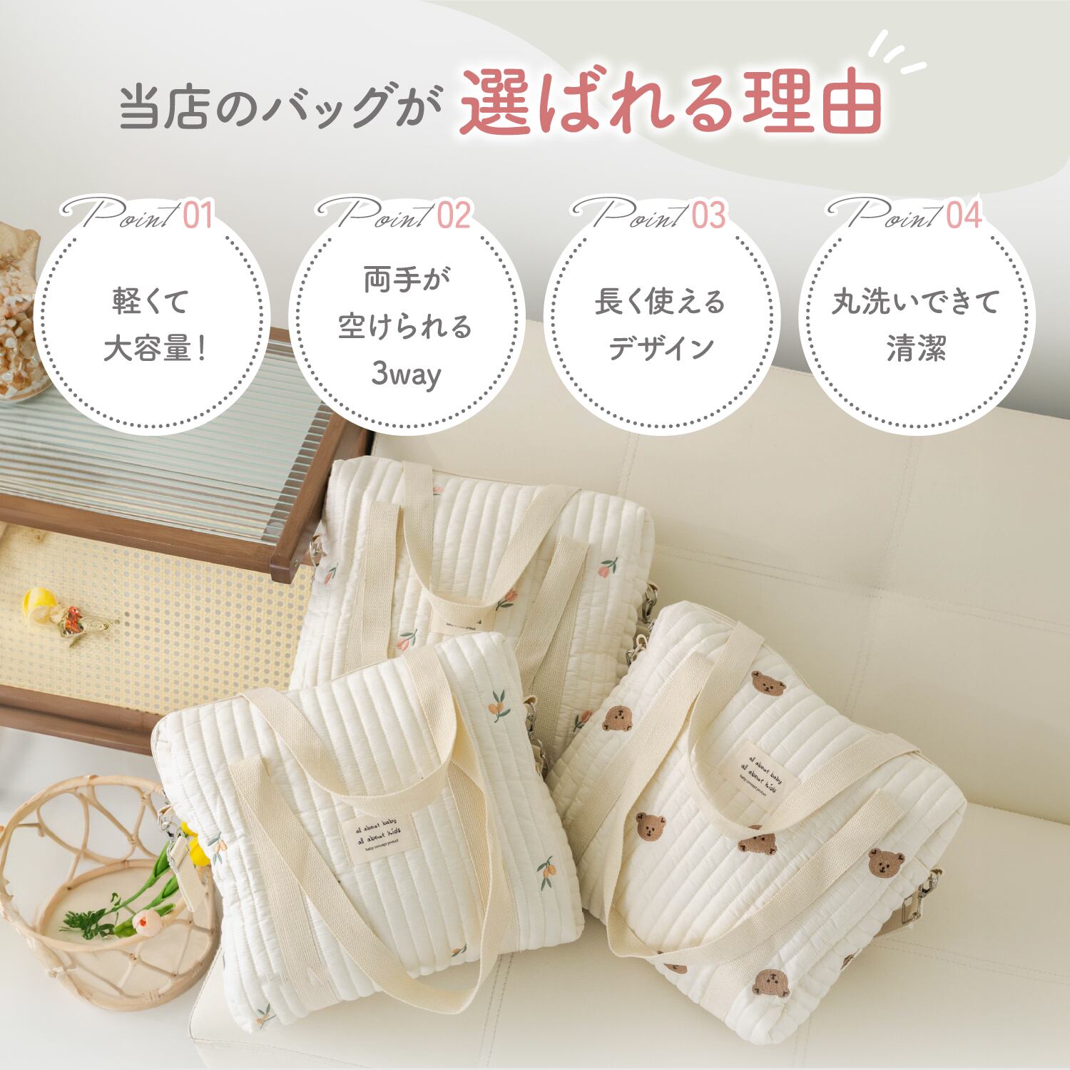 保育園バッグ、荷物の多いママのマザーズバッグとしても。可愛くて使うのが楽しみになるバッグです。