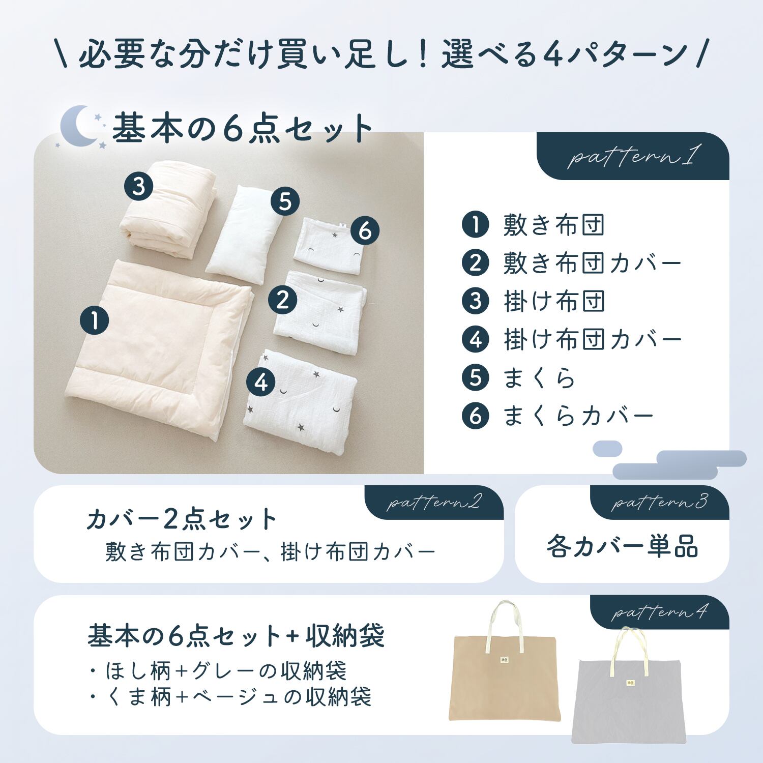 4.6点セット+収納袋 ほし柄+グレーの収納袋/くま柄+ベージュの収納袋