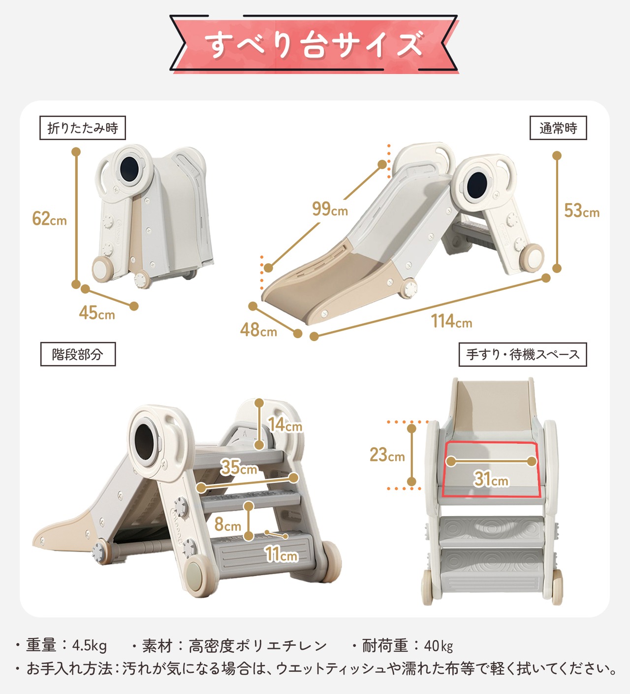 長時間使用の劣化破損によるケガの恐れがありますので、定期的に点検を行ってください。