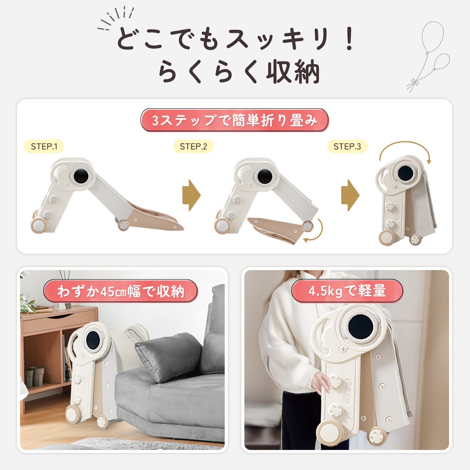 すべり台(収納時):高さ62cm×幅45cm