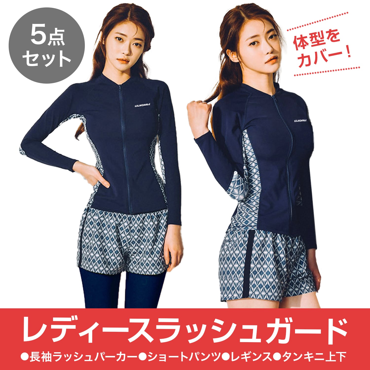 5点セット(長袖ラッシュガード、ショートパンツ、レギンス、タンキニ上下)