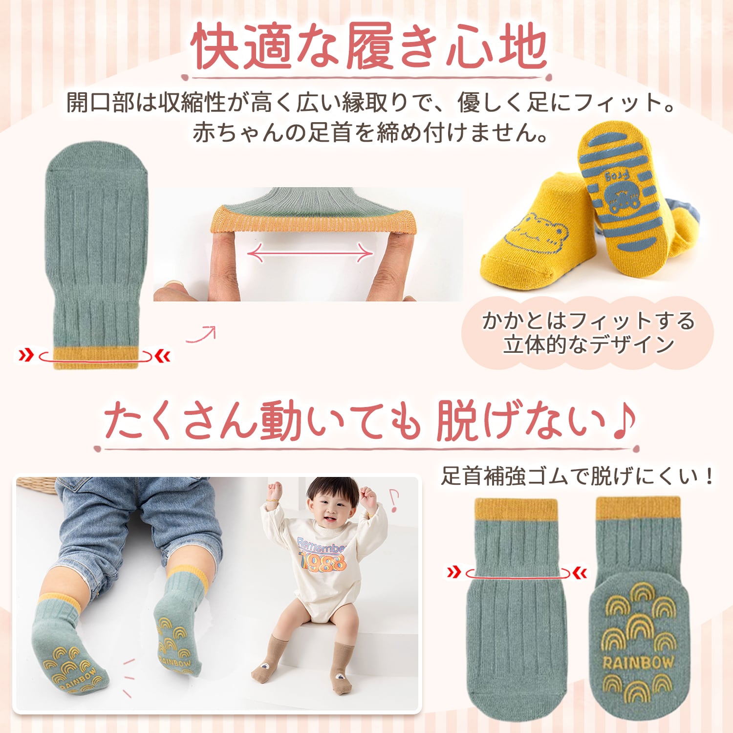 「靴下を履くと滑って危ない」という問題を解決。活発に動く赤ちゃん、お子様にもおすすめです。