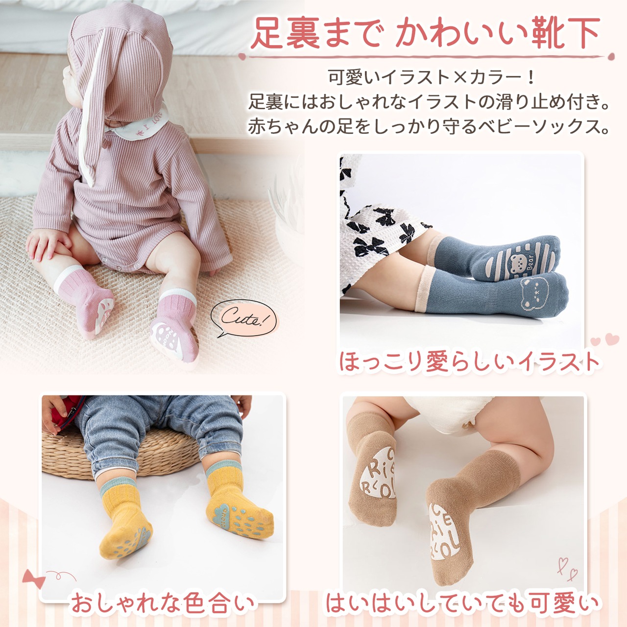 【足裏までかわいいベビーソックス】