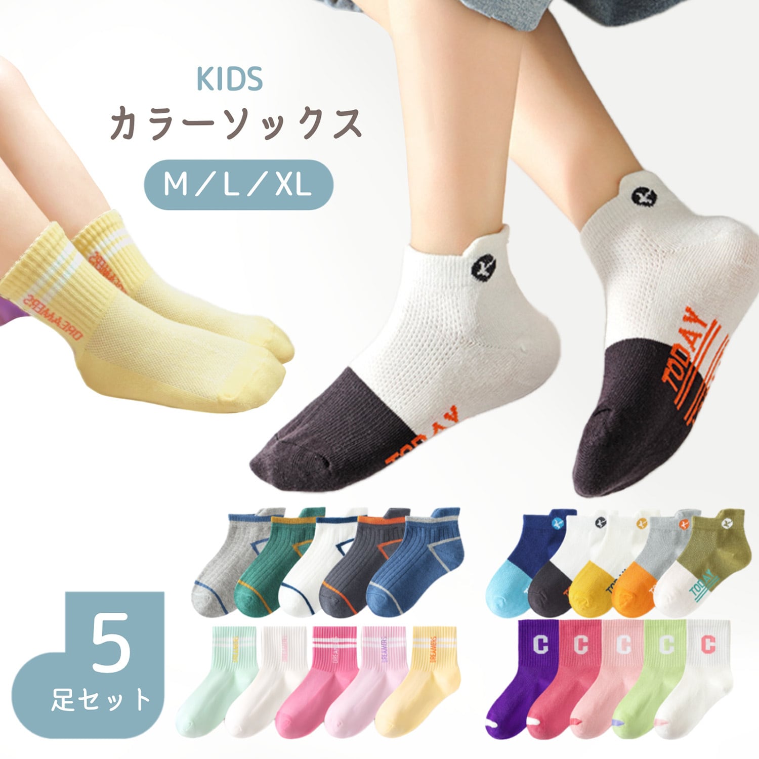 キッズカラーソックス5足セット