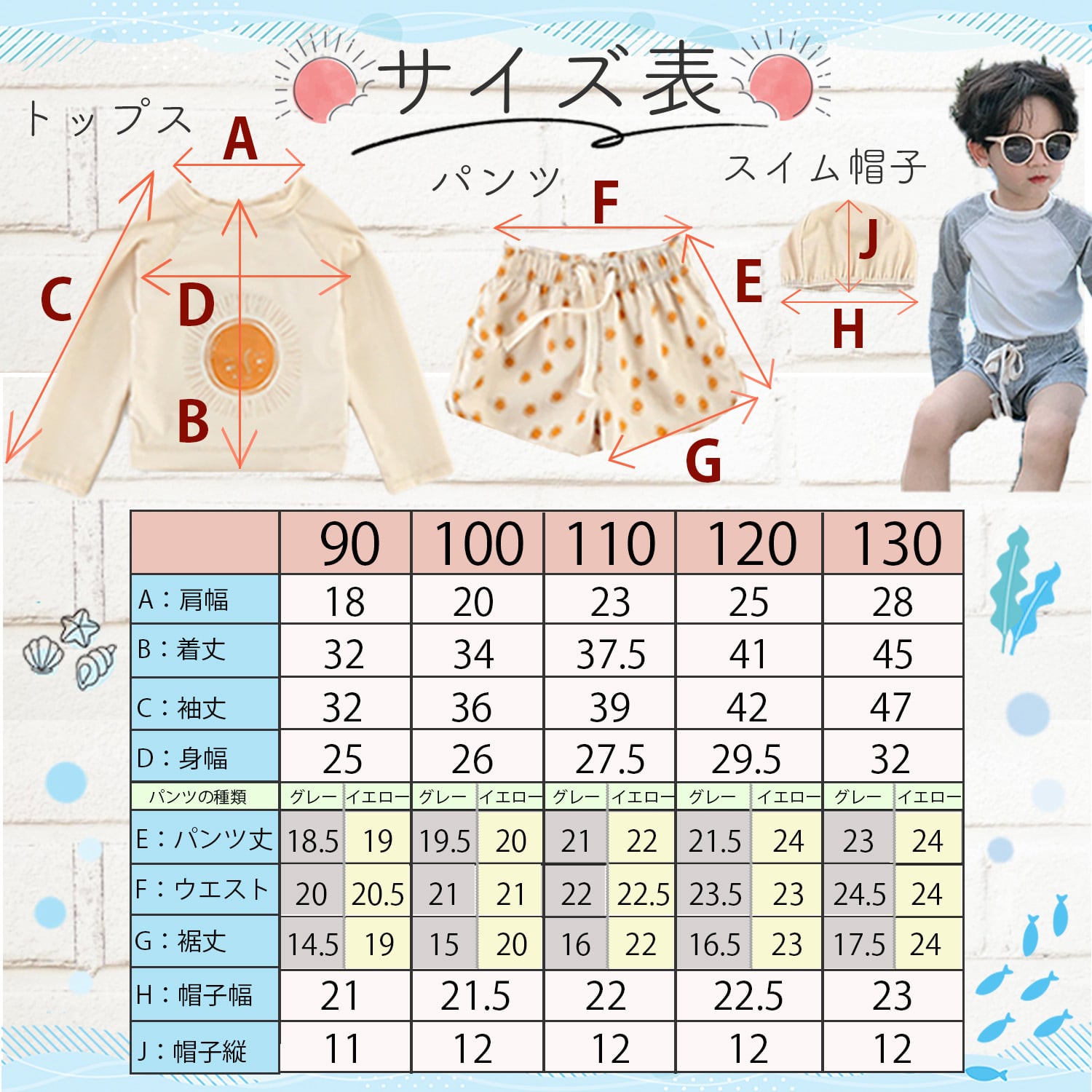 トップス、スイム帽子:84%ポリエステル、16%スパンデックス(グレー、イエロー共通)