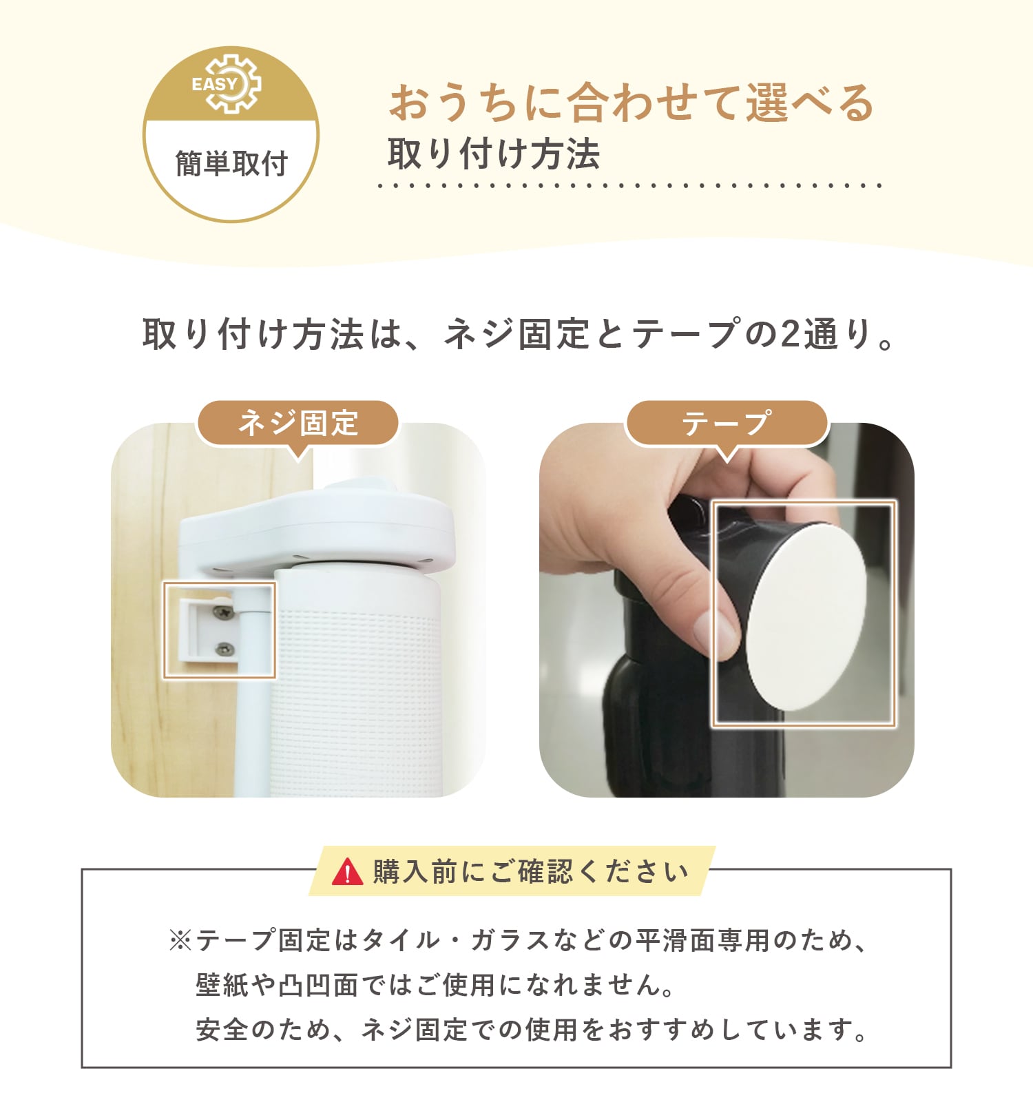 ・ネジで取り付けをされる場合は、壁に穴が開くため、あらかじめご了承ください。