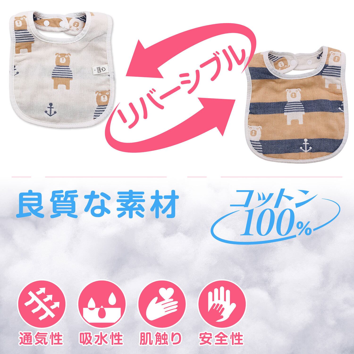 汗をかきやすい時季やおでかけ時にも扱いやすく、赤ちゃんの首まわりにやさしくフィットします。