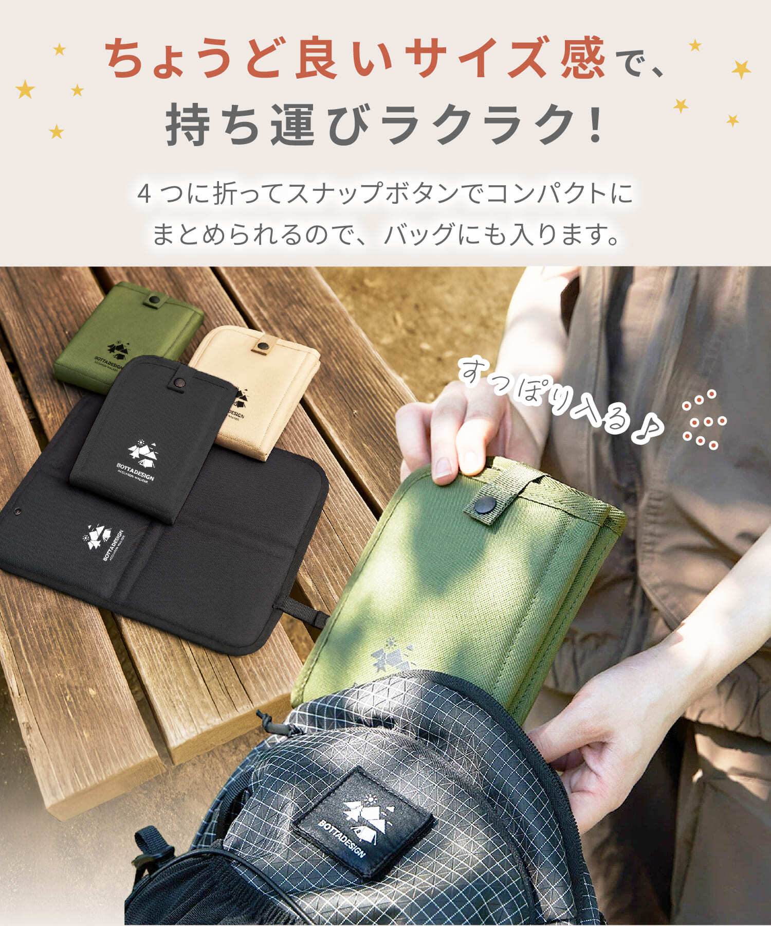ちょうど良いサイズ感だから、持ち運びが簡単です。