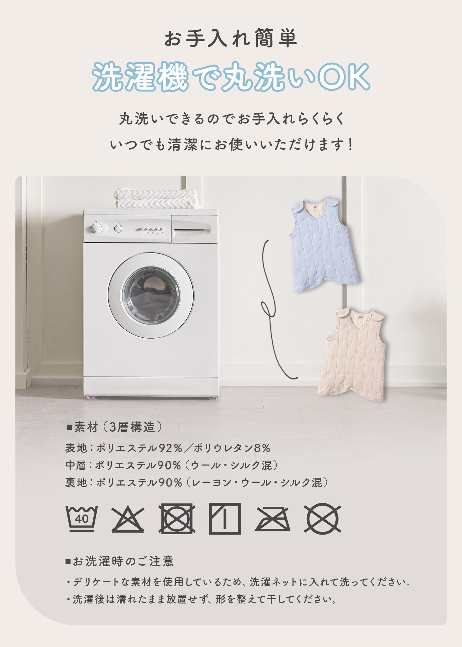 2WAY仕様の機能性と、洗濯機で丸洗いできるお手入れのしやすさは、忙しい毎日の強い味方。