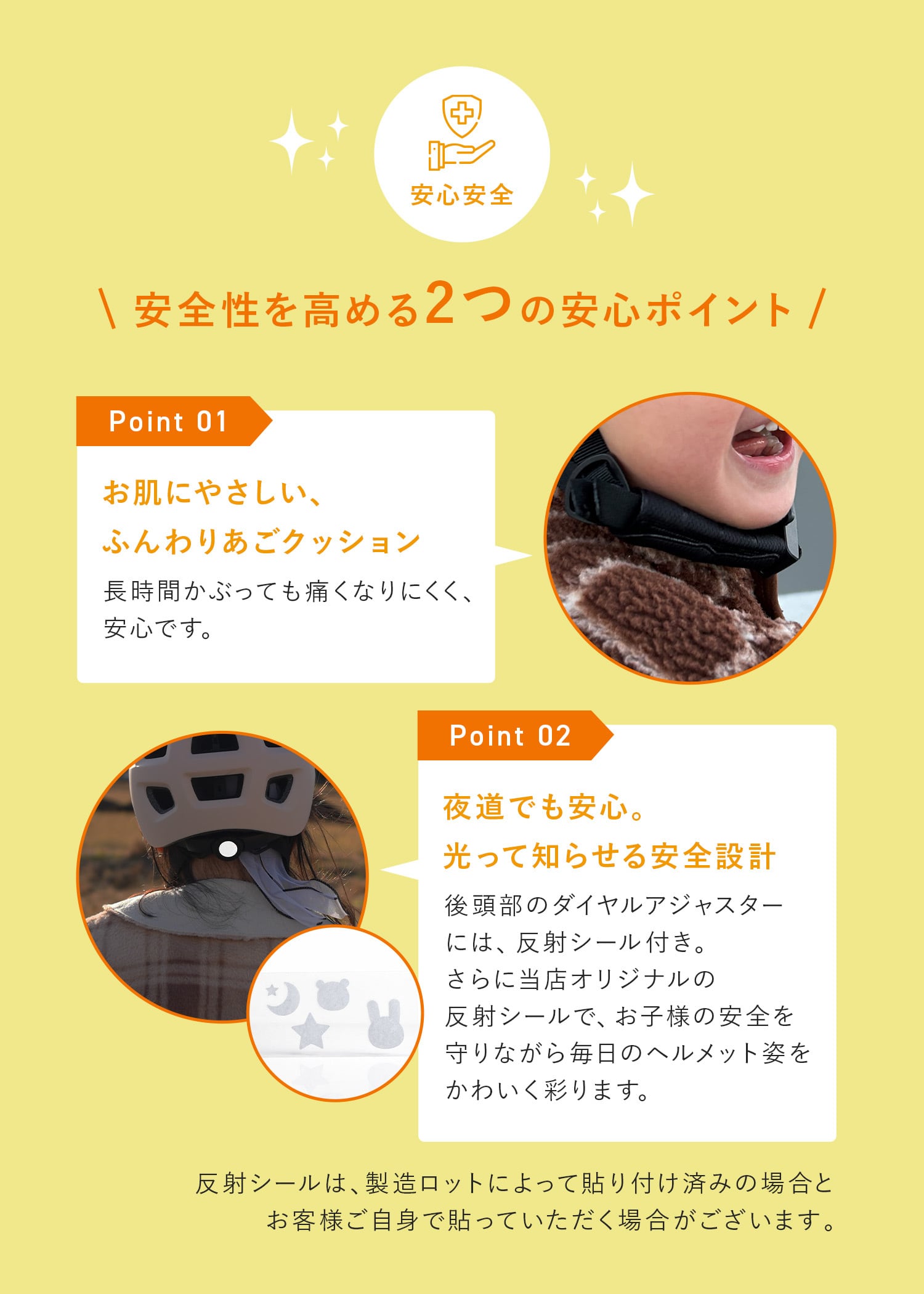 当店オリジナルの反射シールで、夜道でも見えやすい。