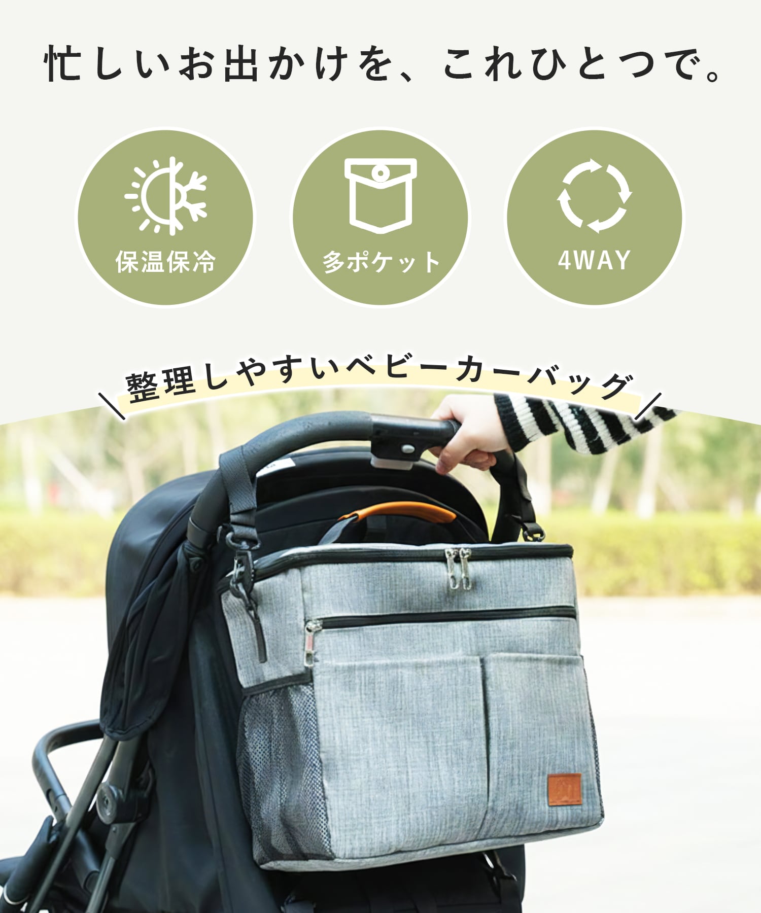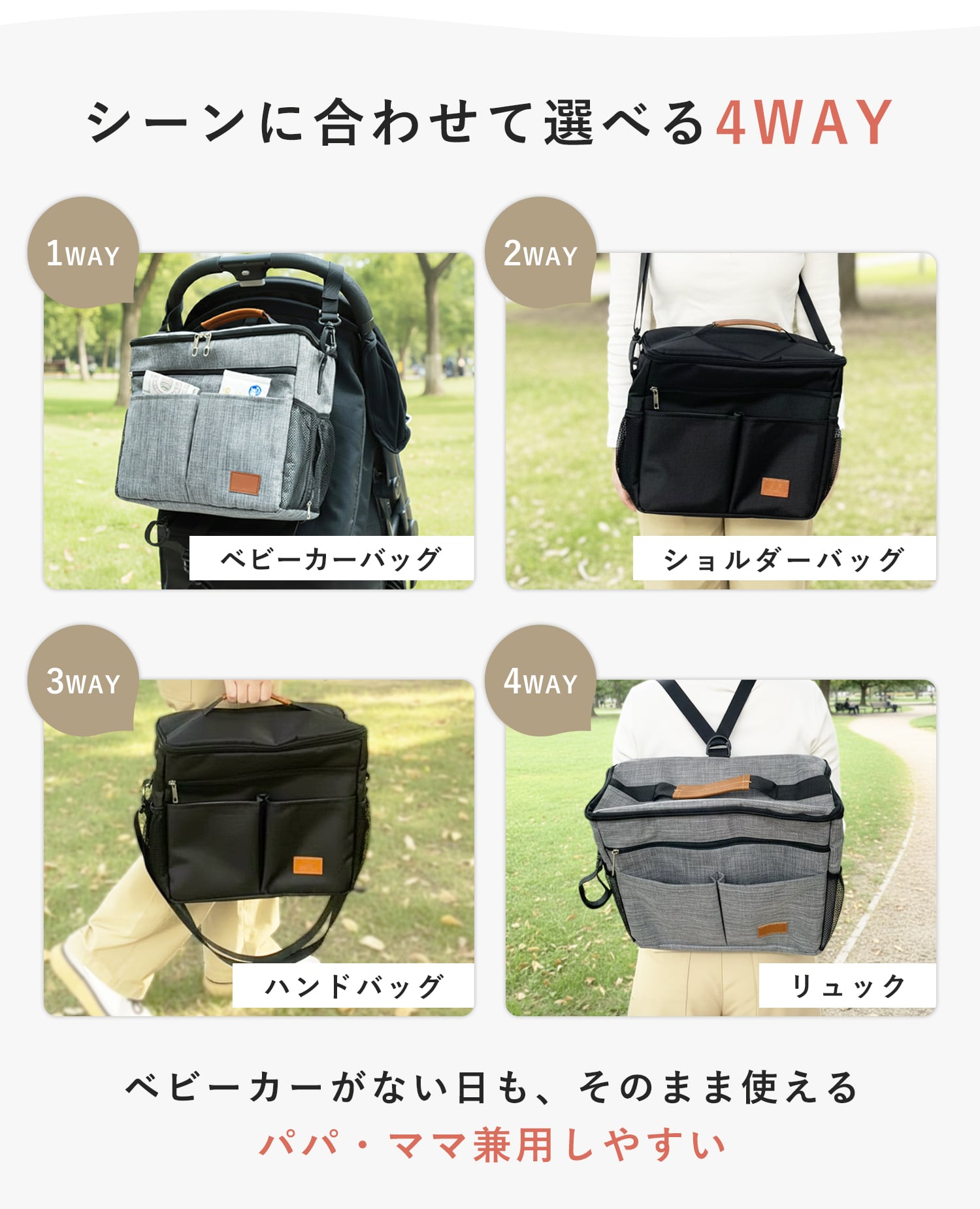 「ベビーカーバッグ・ショルダー・ハンドバッグ・リュック」の4WAY仕様。