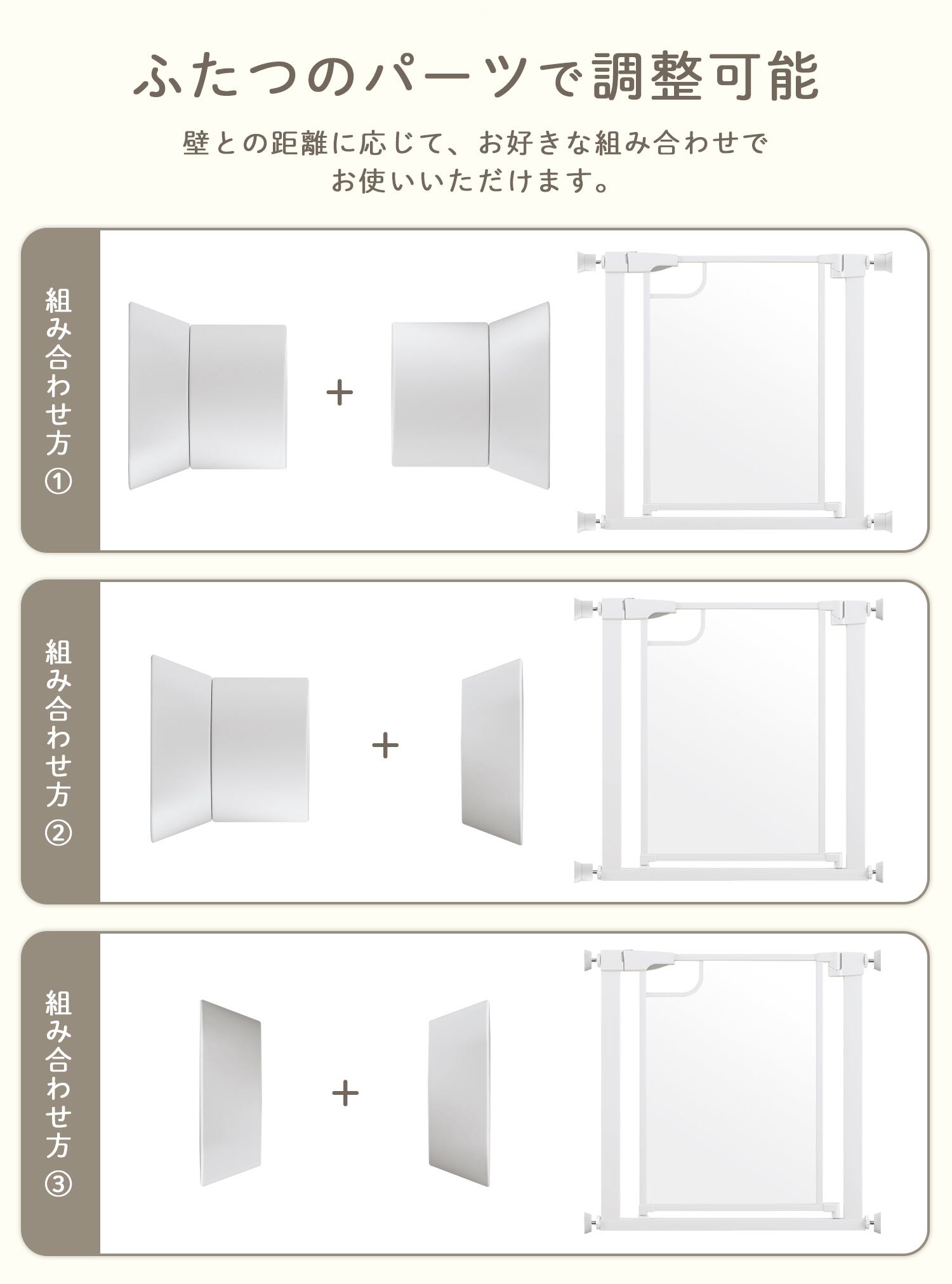 ベビーゲートやペット用ゲートを取り付ける際に、壁を傷つけずに取り付けることができます。4箇所を固定するゲートに取り付けられる4個セット。ホワイト、ブラックの2色展開でお使いのベビーゲートに合わせてお選びいただけます。