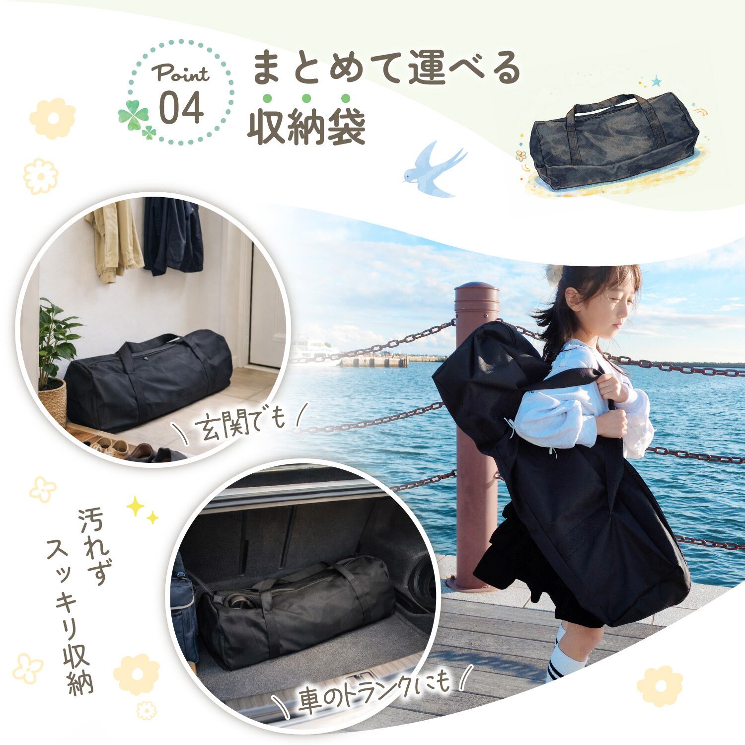玄関収納や車載、持ち運びにも便利です。