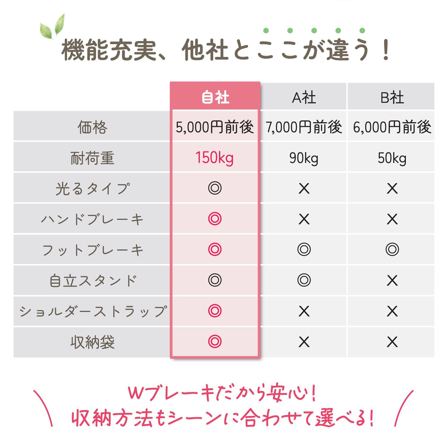 自立スタンドも備え、使わないときも倒れにくく安心です。