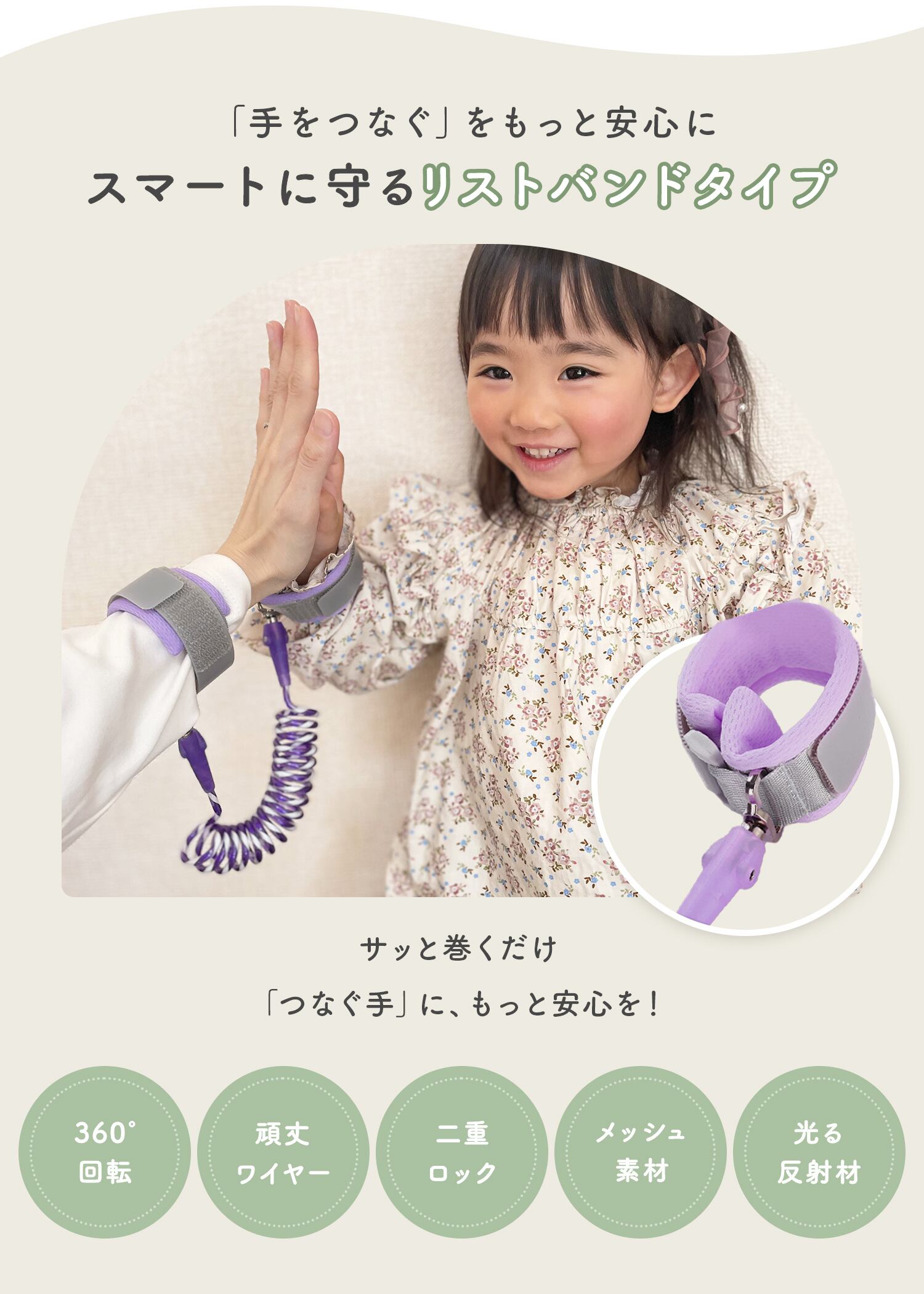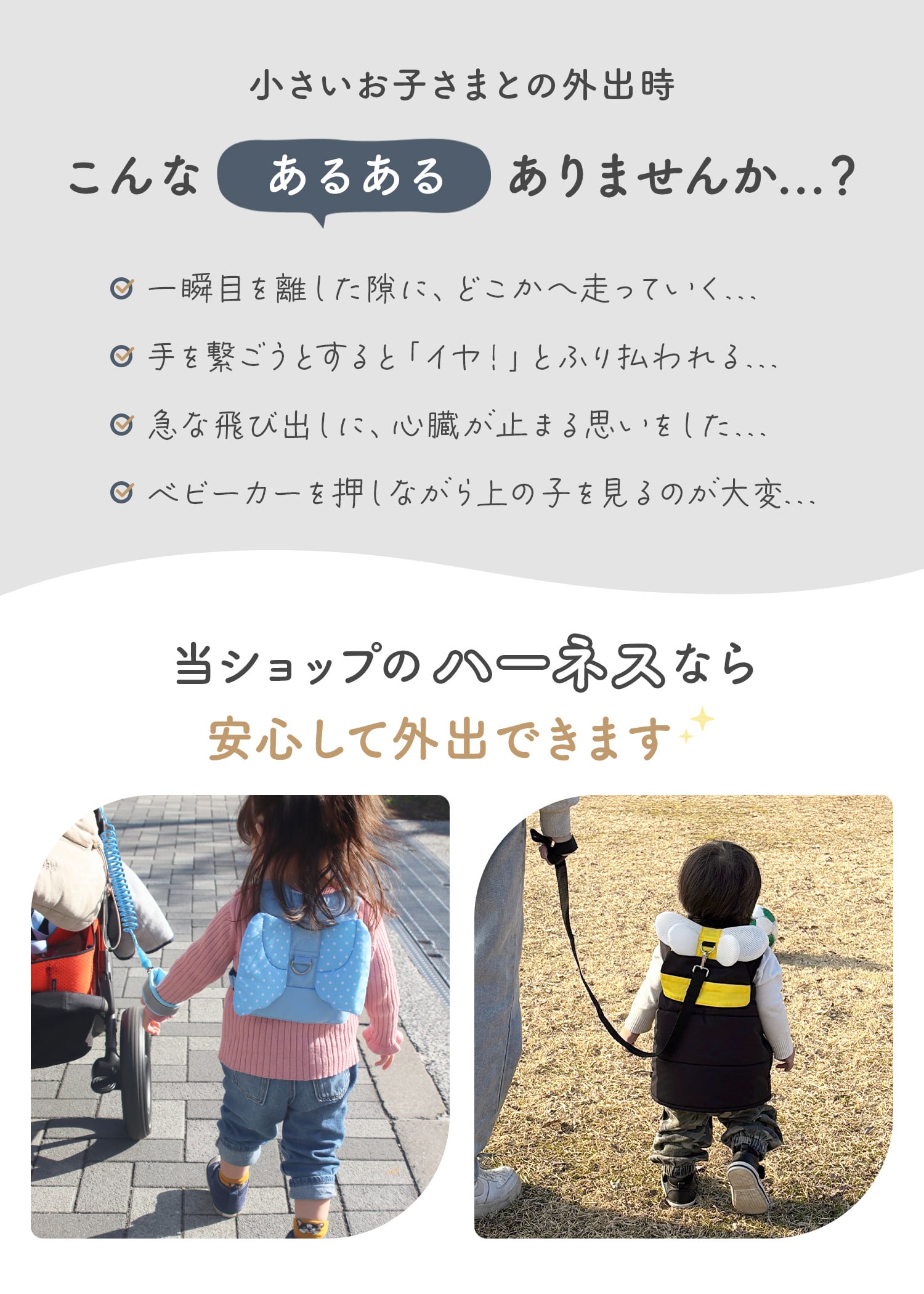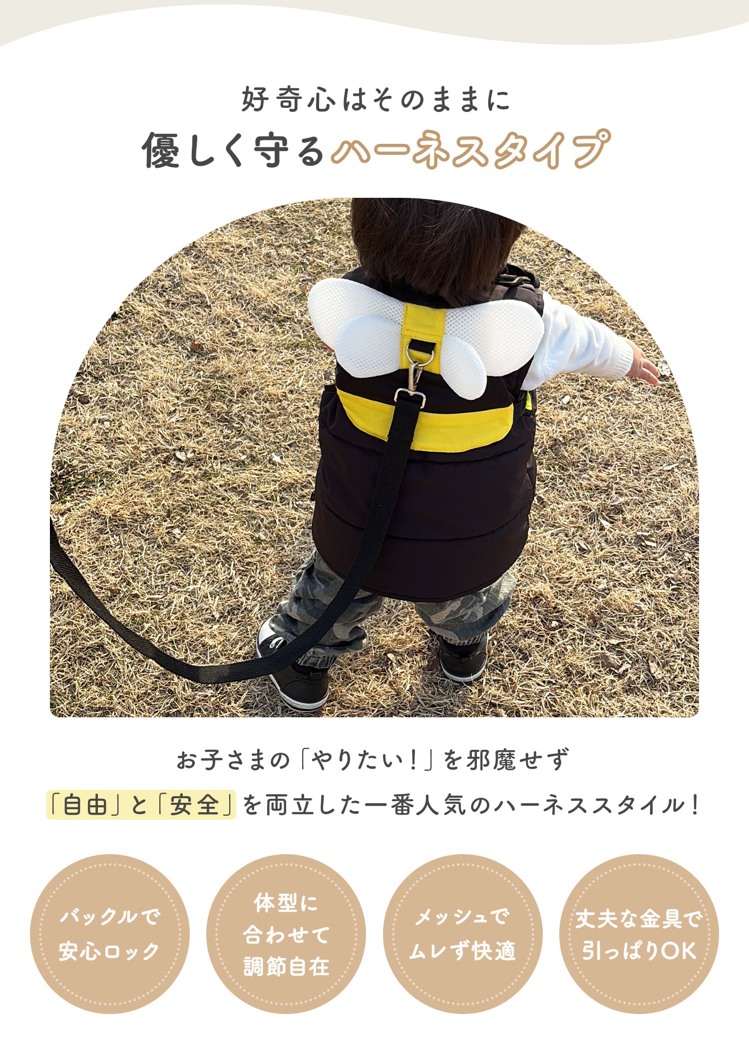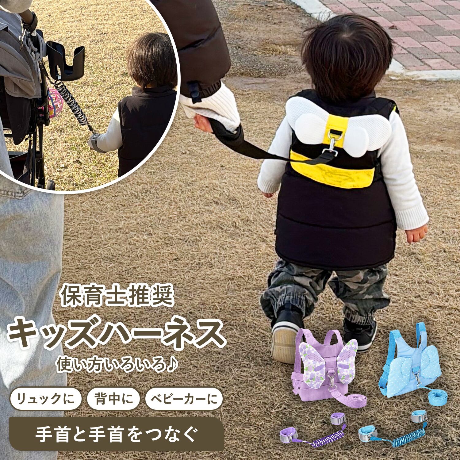 急な飛び出しや人混みでの迷子を物理的にシャットアウト。