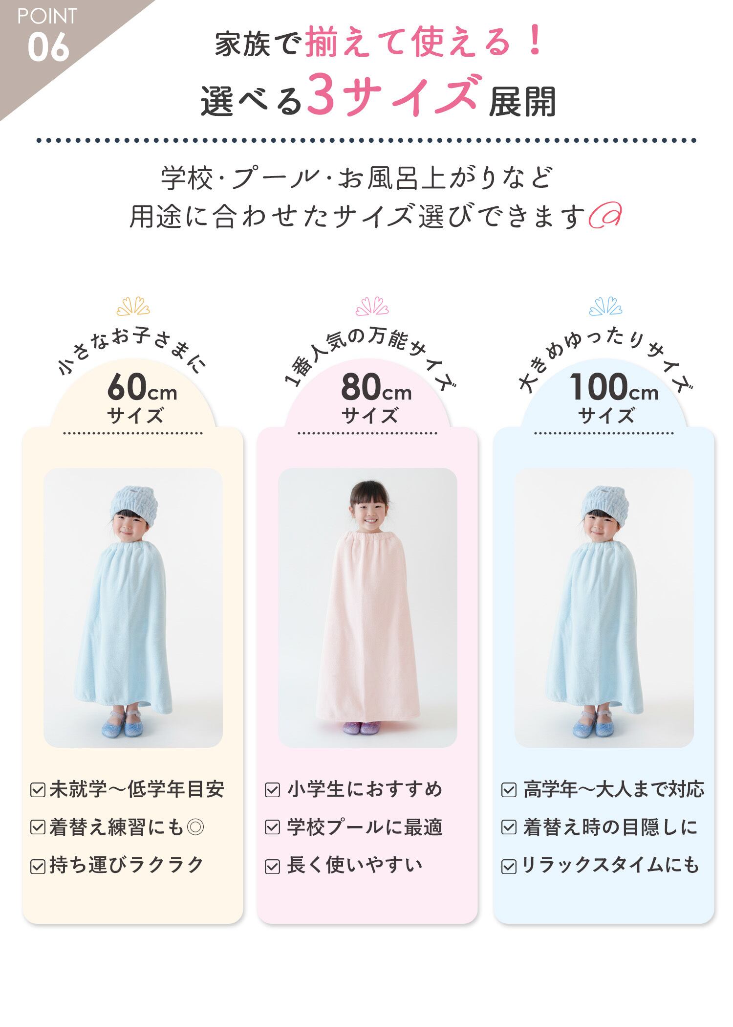 未就学児〜低学年向けの60cm、学校プールに最適な80cm、高学年〜大人まで使える100cmの3サイズ展開。