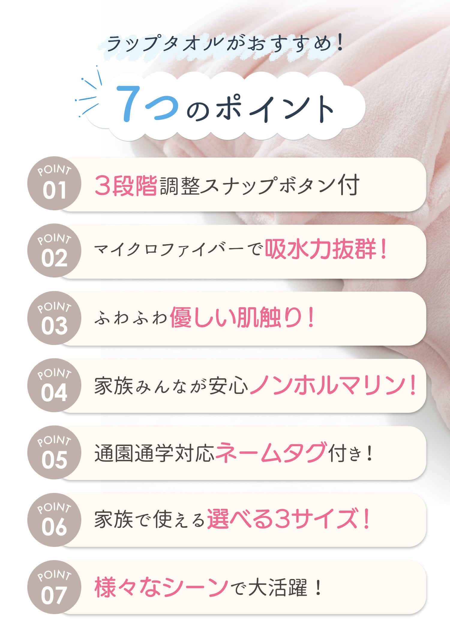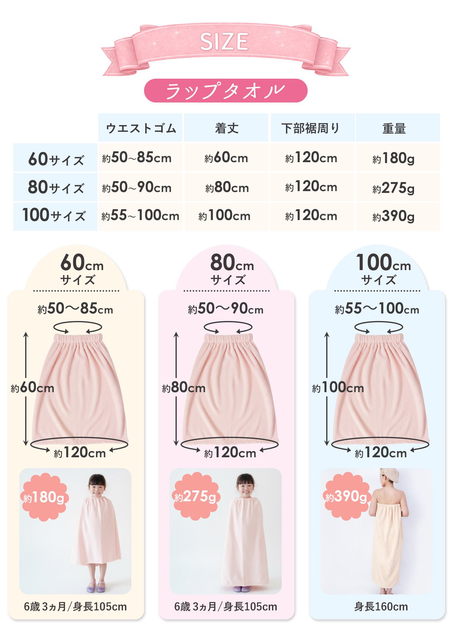 ラップタオル:ベージュ/ピンク/ライトブルー