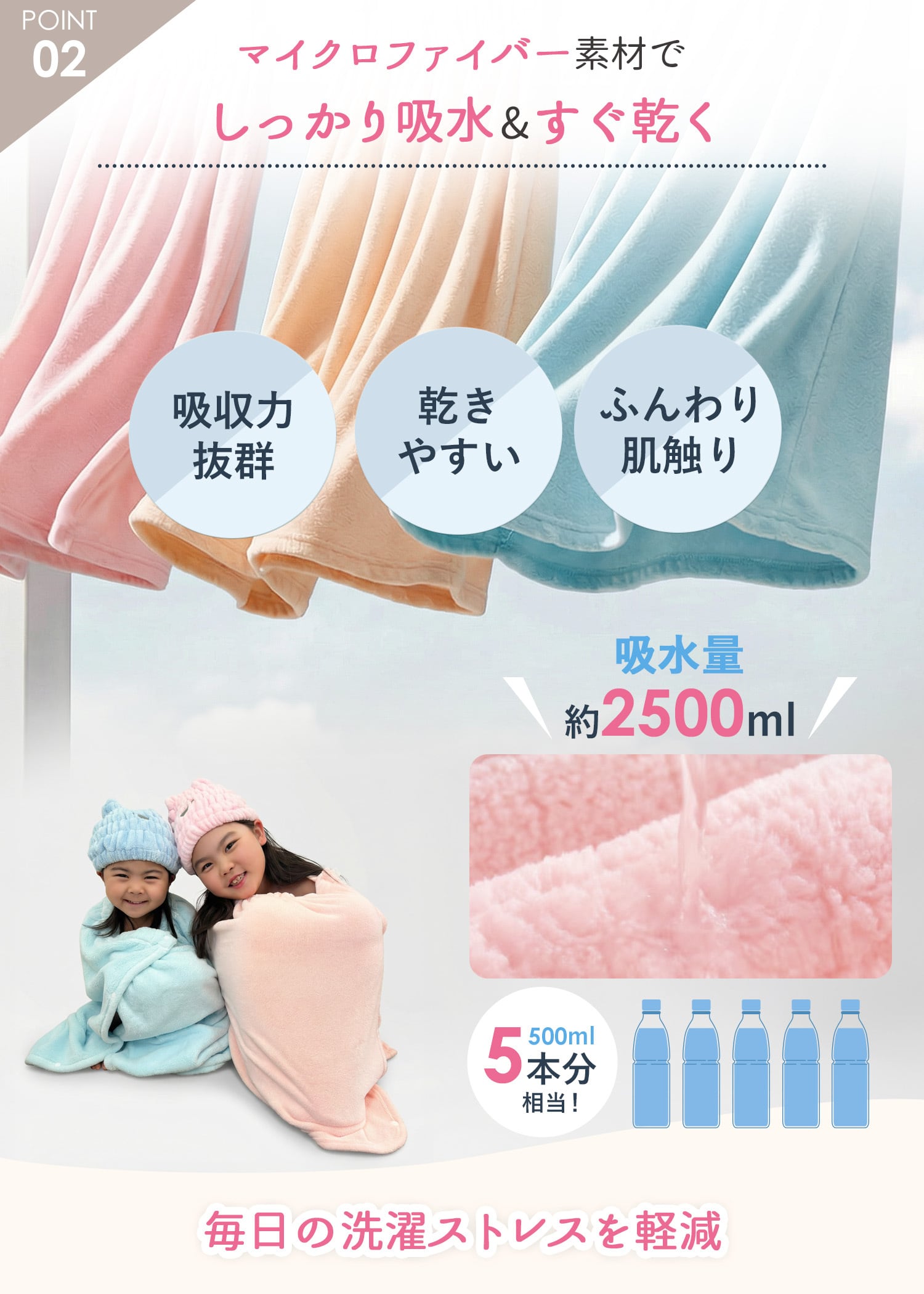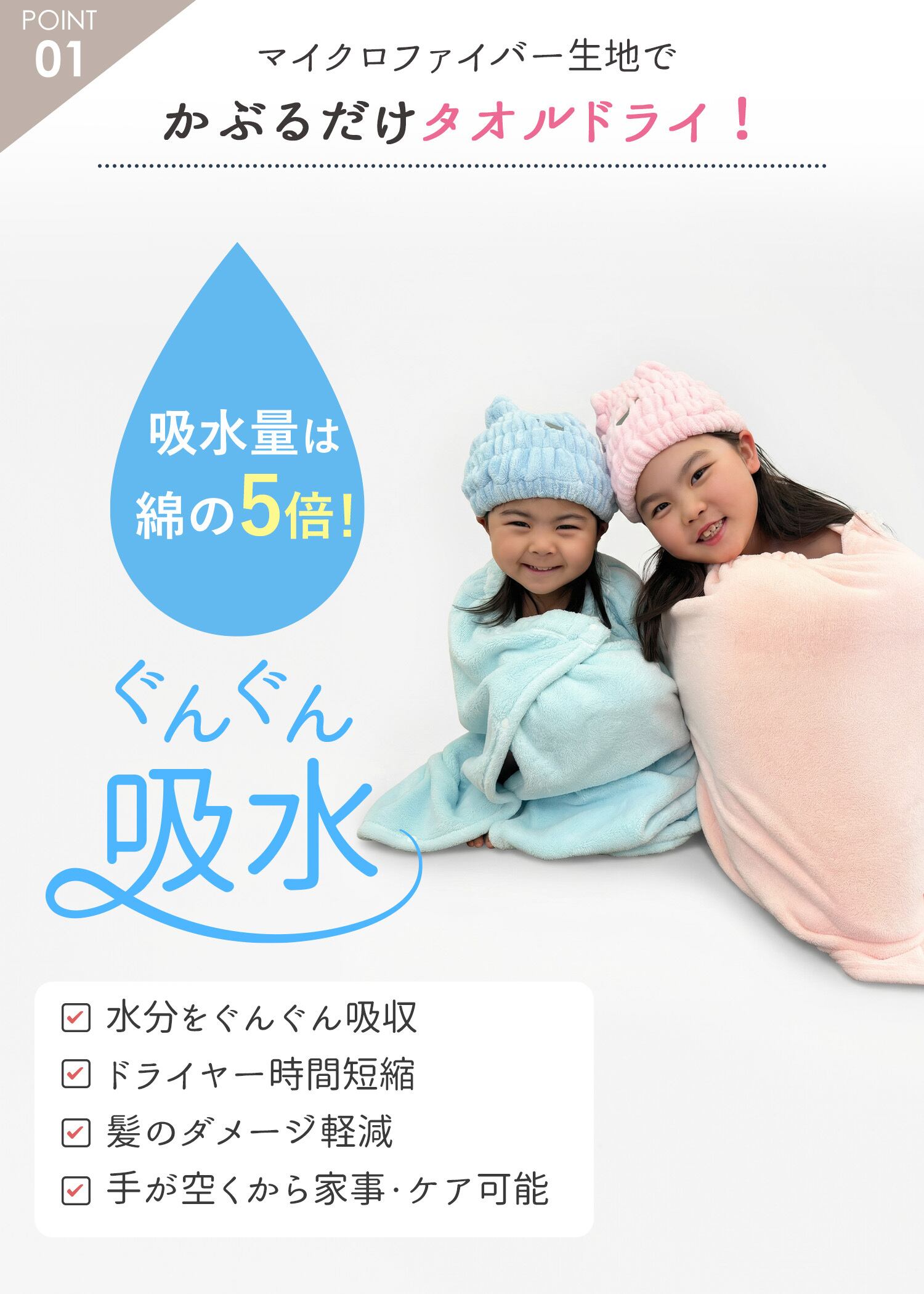 ドライヤー前の水分をしっかり吸収するので、時短ケアに繋がります。