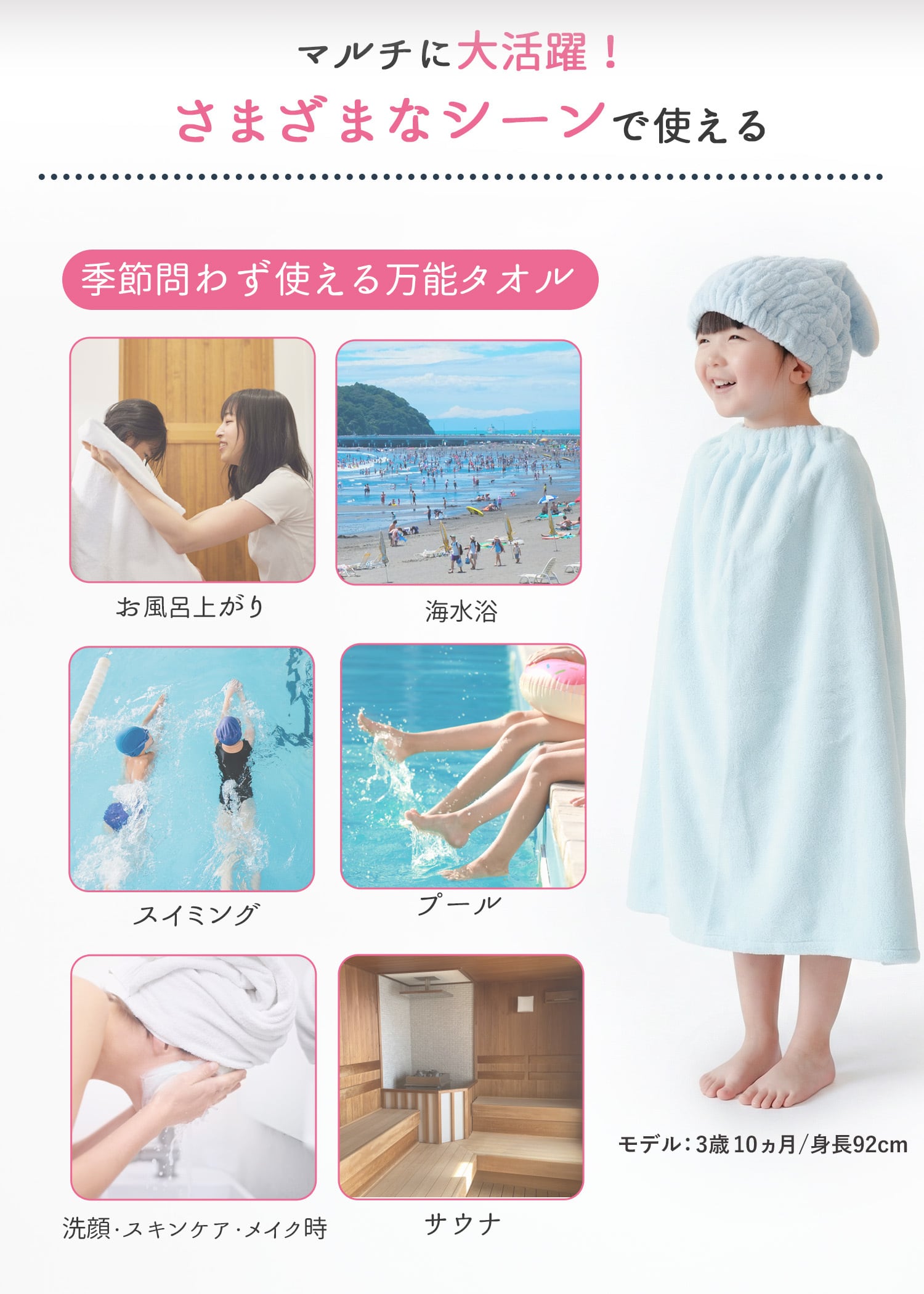 ラップタオル+タオルキャップセット:ラップタオル×1+タオルキャップ×1