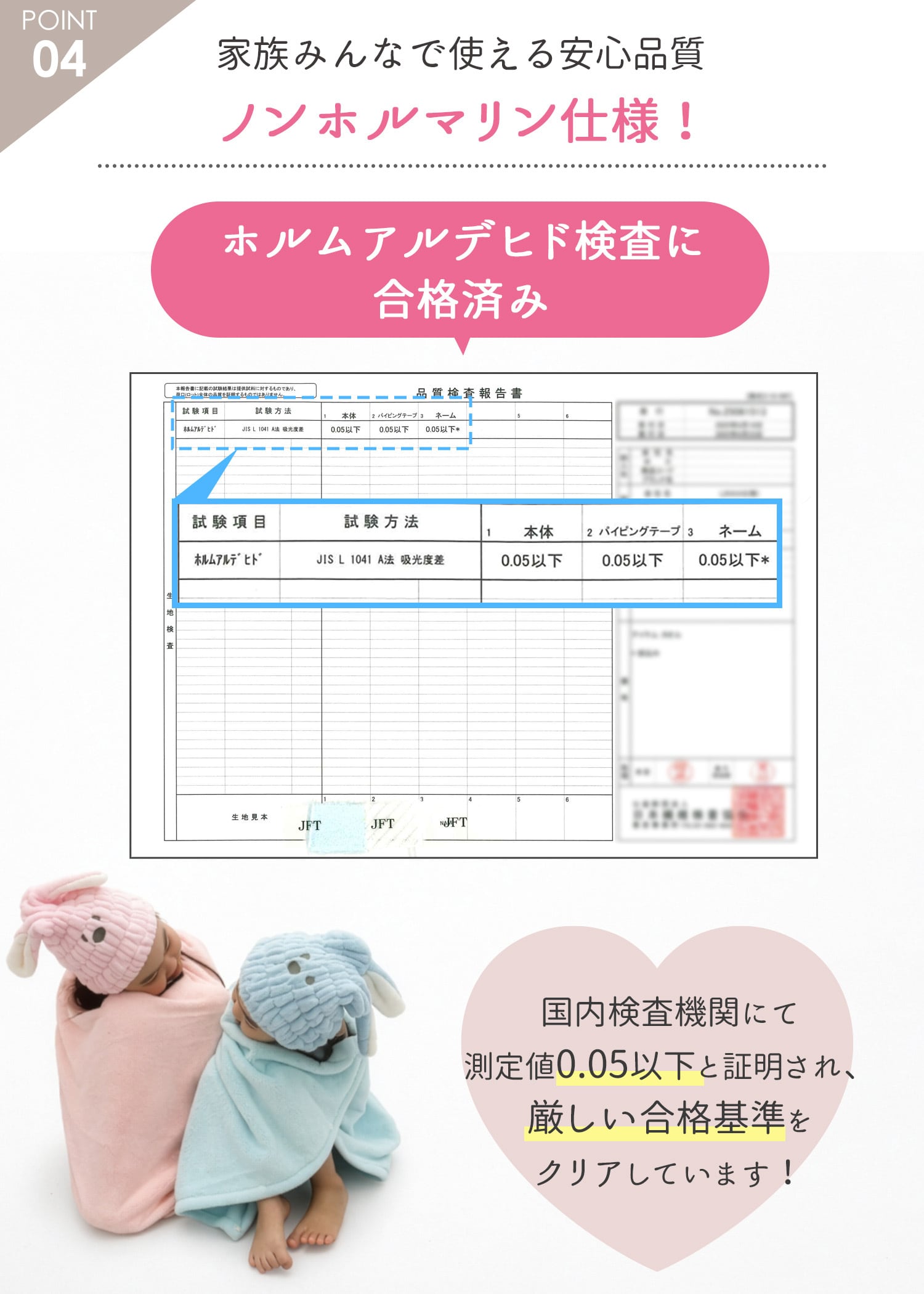 乳幼児用製品の基準に迫る、厳しい国内検査をクリアした安心品質です。