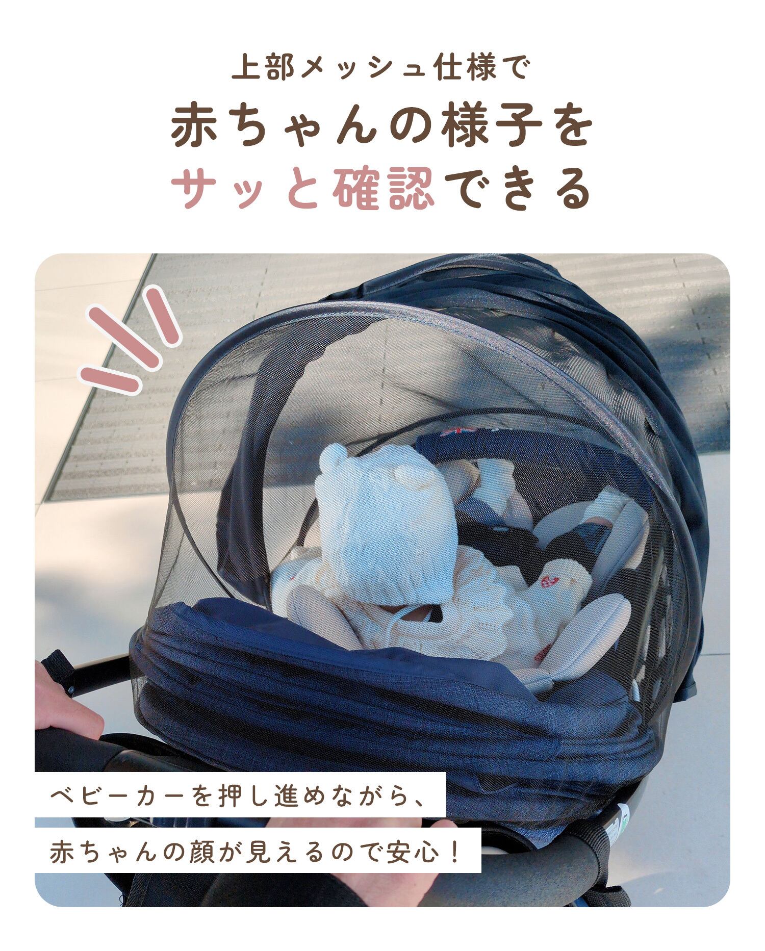 上部はメッシュ仕様で、ベビーカーを押しながらでも赤ちゃんの様子をさっと確認できます。顔が見えることでお世話もしやすく、外出中の不安を軽減。日常使いにうれしい配慮が詰まっています。