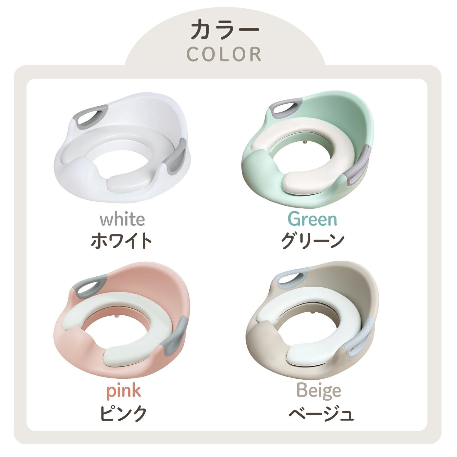 ホワイト、ピンク、ベージュ、グリーン
