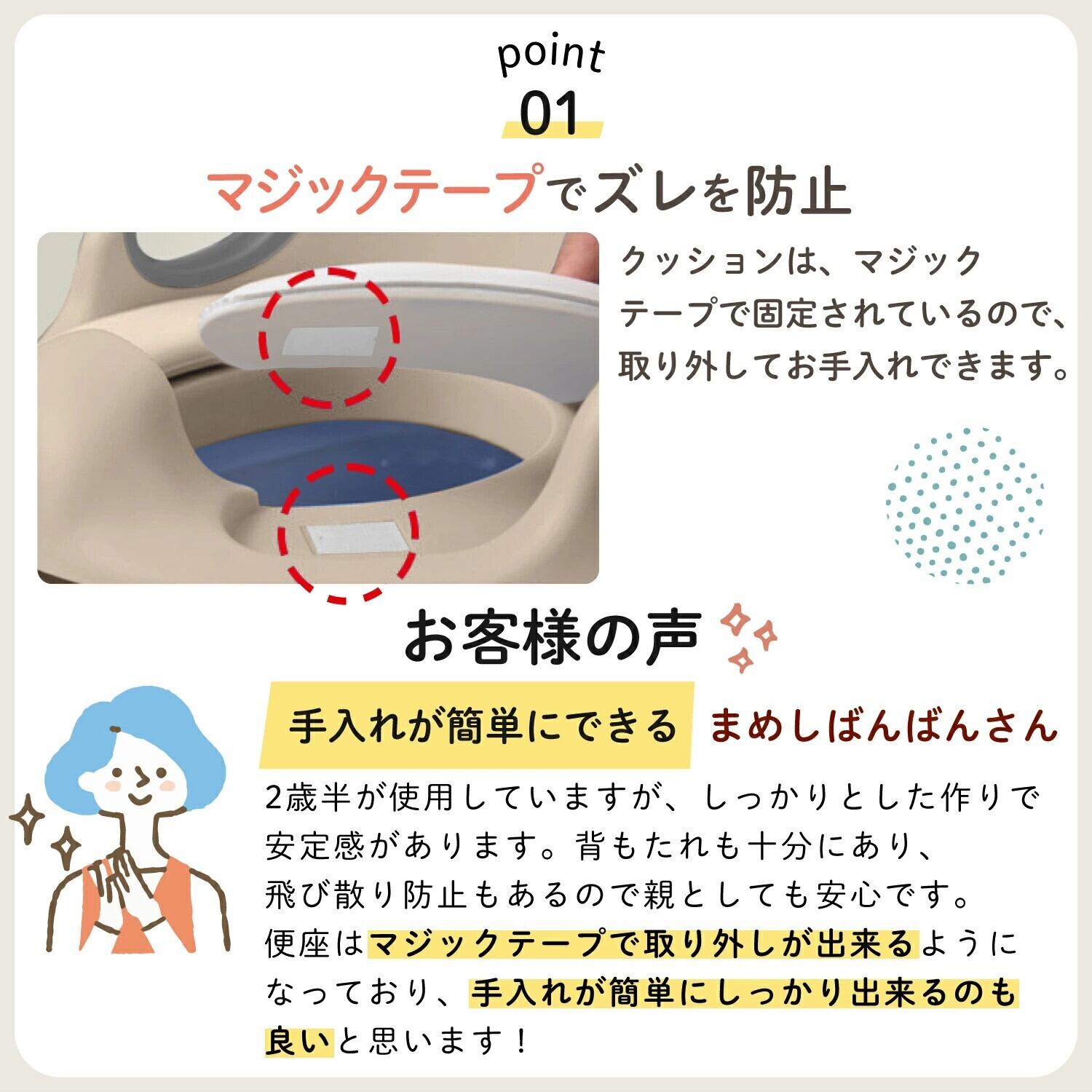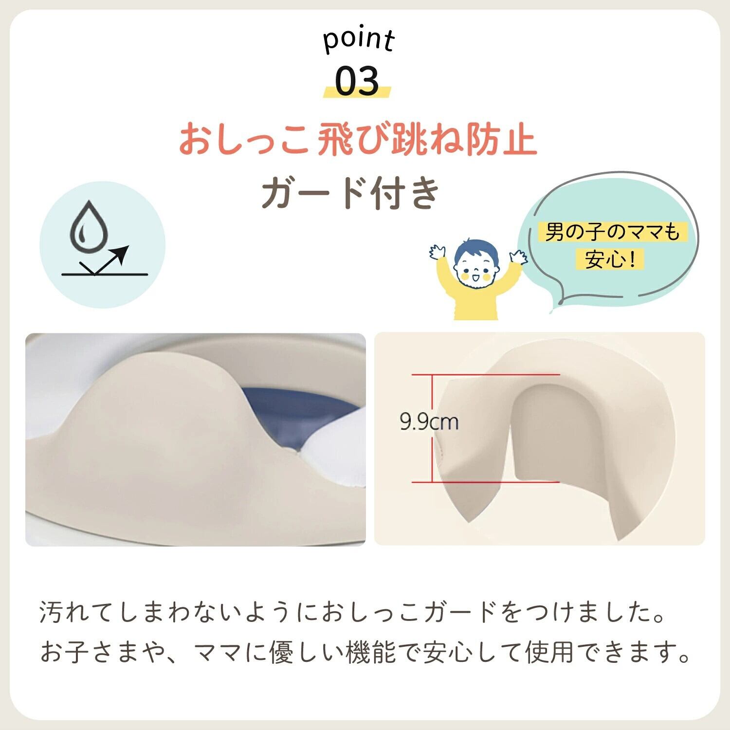取っ手&おしっこガード付きで、安心してトイレトレーニング。