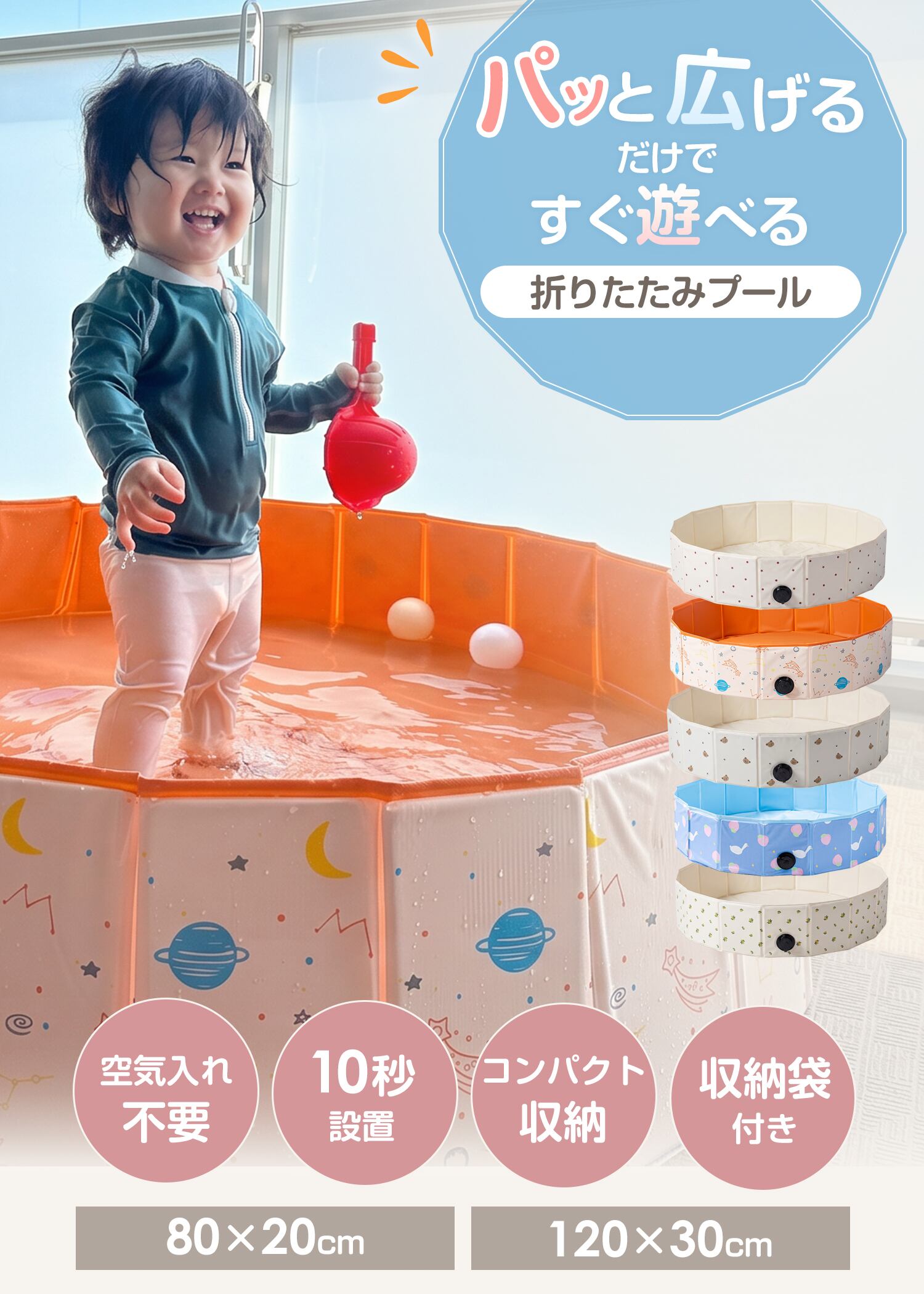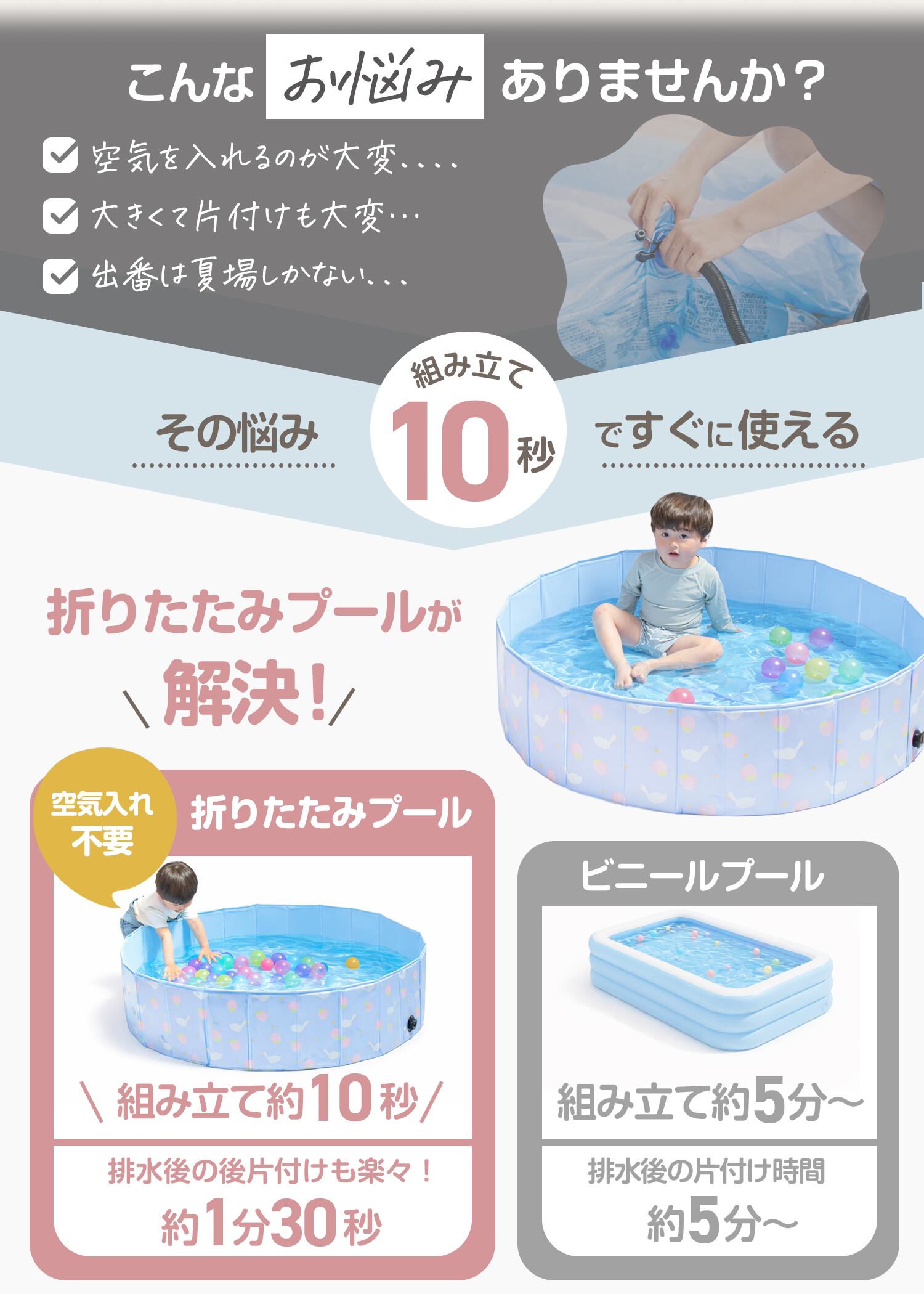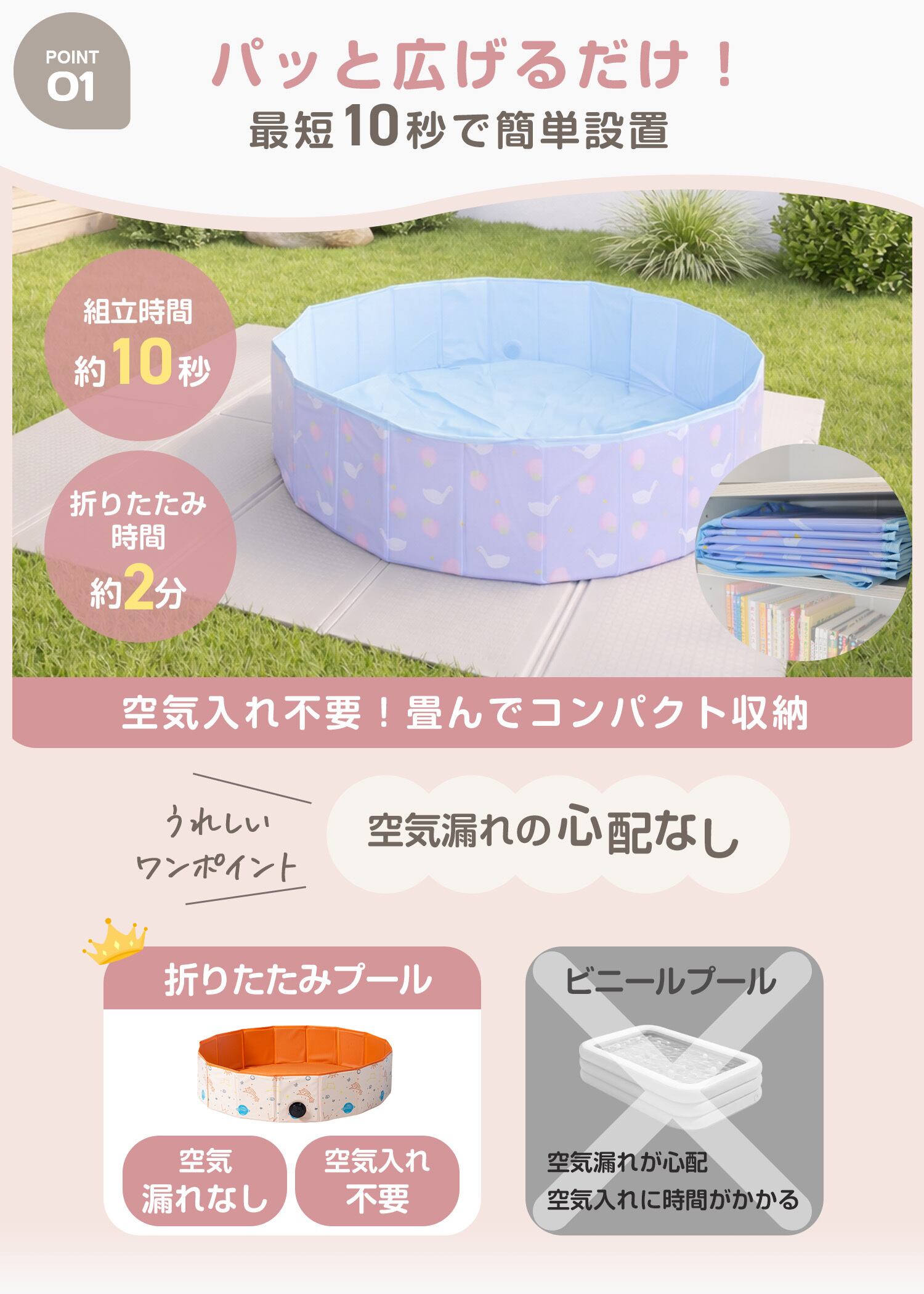 面倒な準備は一切なし。使いたい時にすぐ広げて、排水後はサッと折りたたむだけ。
