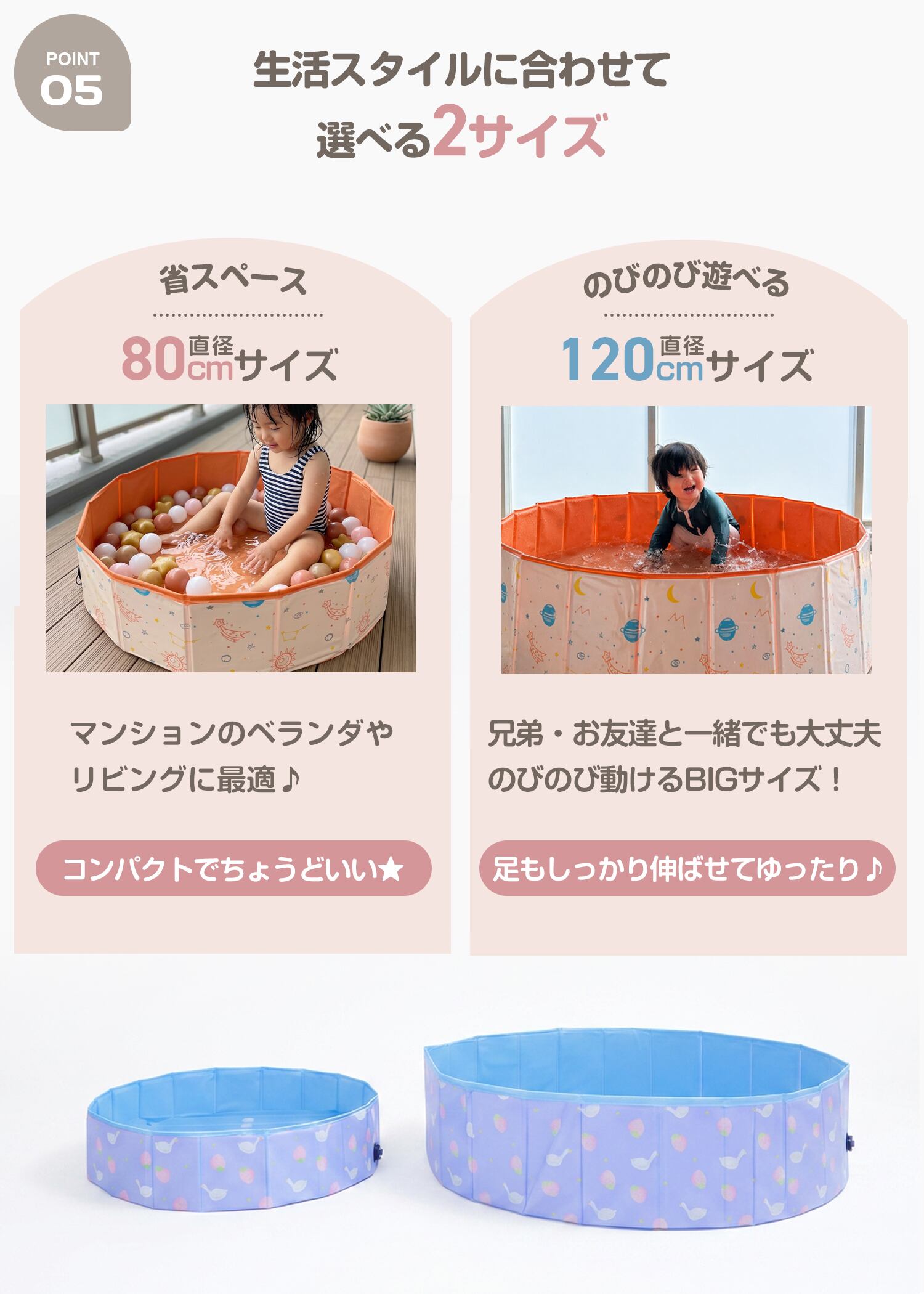 マンションのベランダに最適な80cmサイズと、兄弟でゆったり遊べる120cmサイズの2展開です。