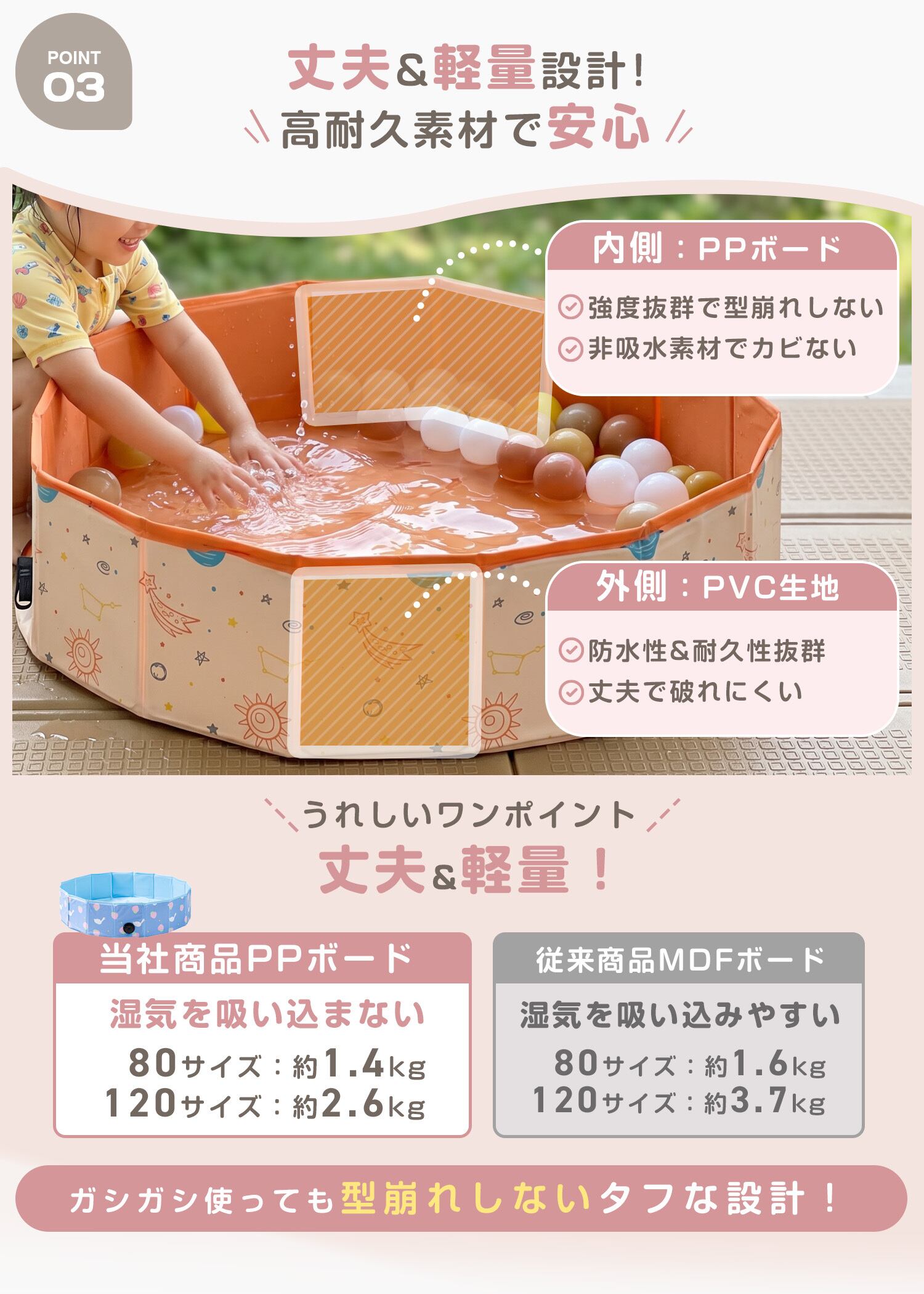 マンションのベランダに最適な80cmサイズと、兄弟でゆったり遊べる120cmサイズの2展開です。