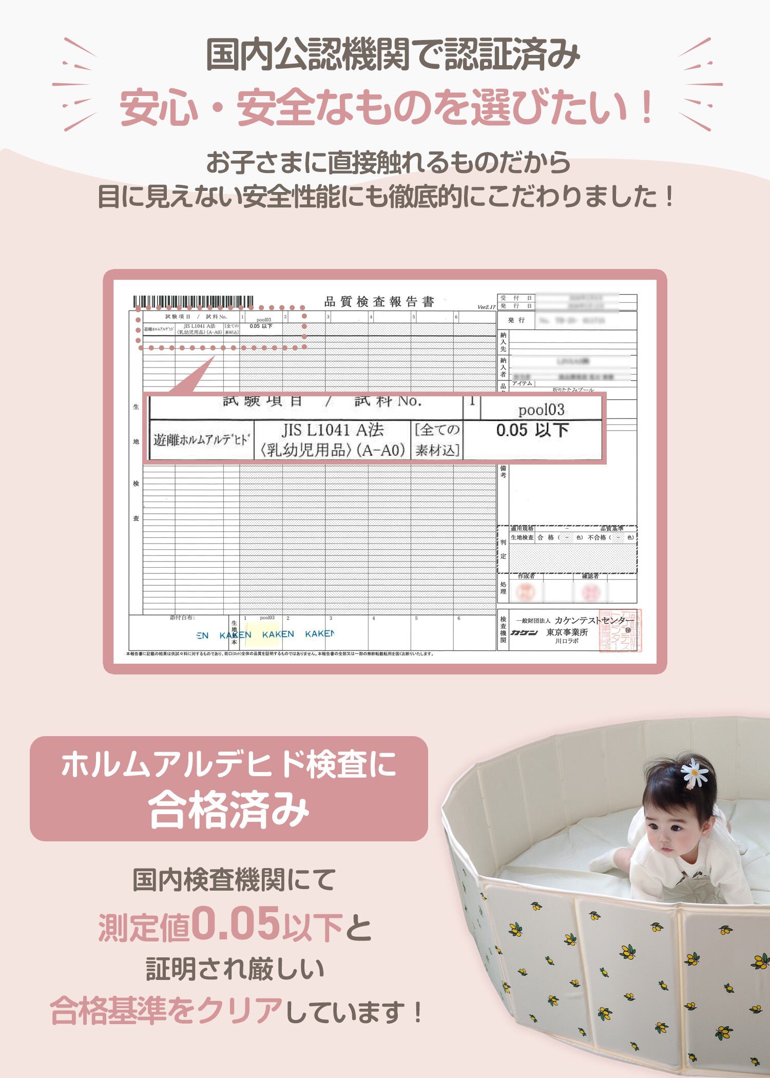 厳しい合格基準をクリアした素材(0.05以下)のみを使用しているため、赤ちゃんが直接触れても安心です。