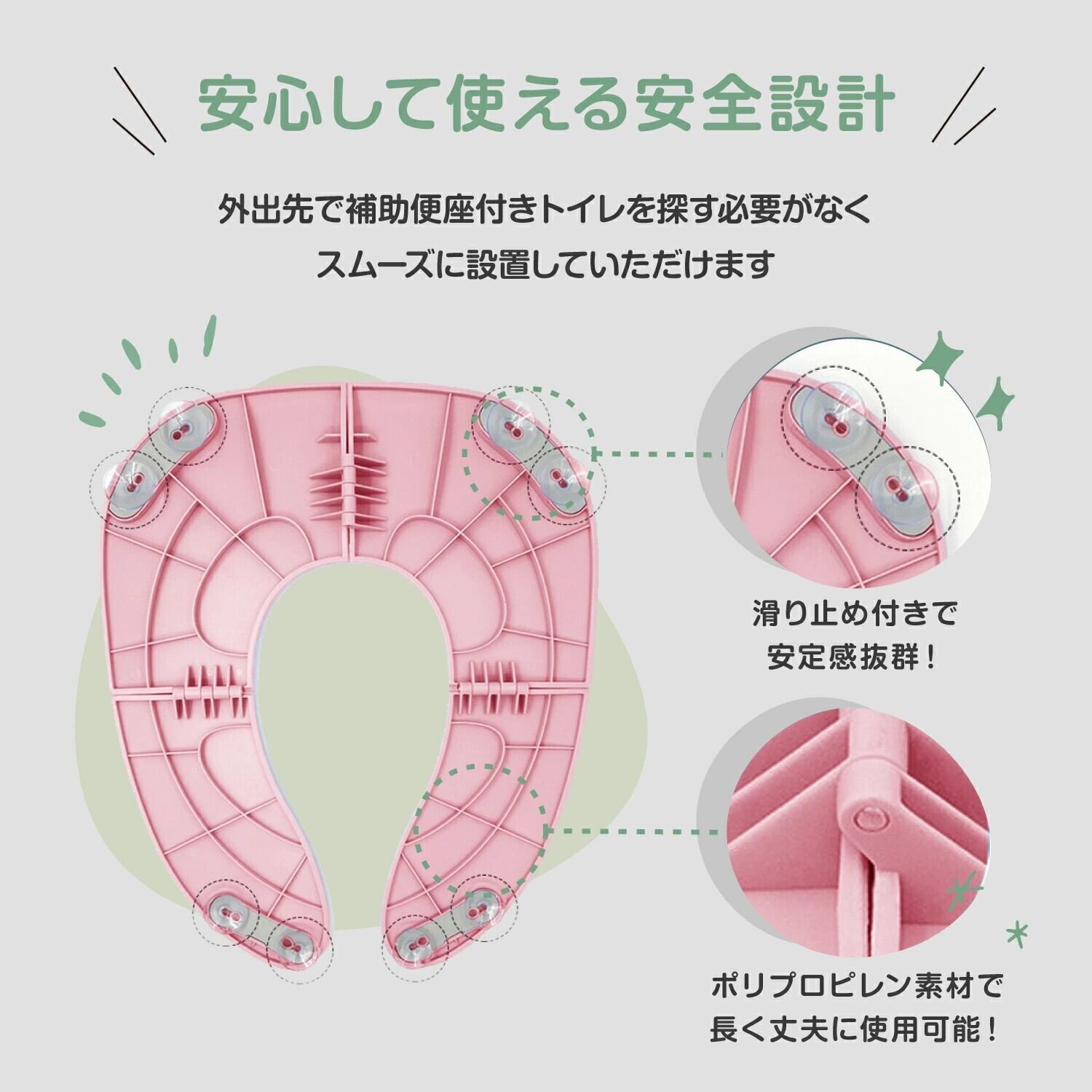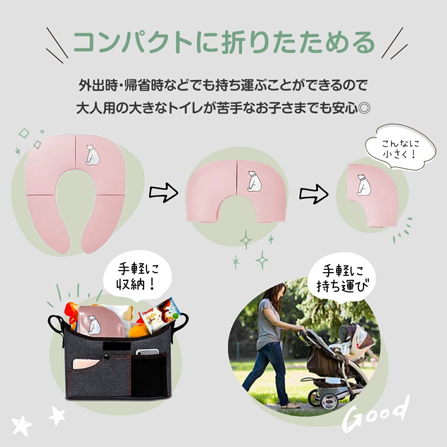トイレトレーニング中のお子さま、パパ・ママにも喜ばれている折りたたみ式のお子さま用補助便座です。