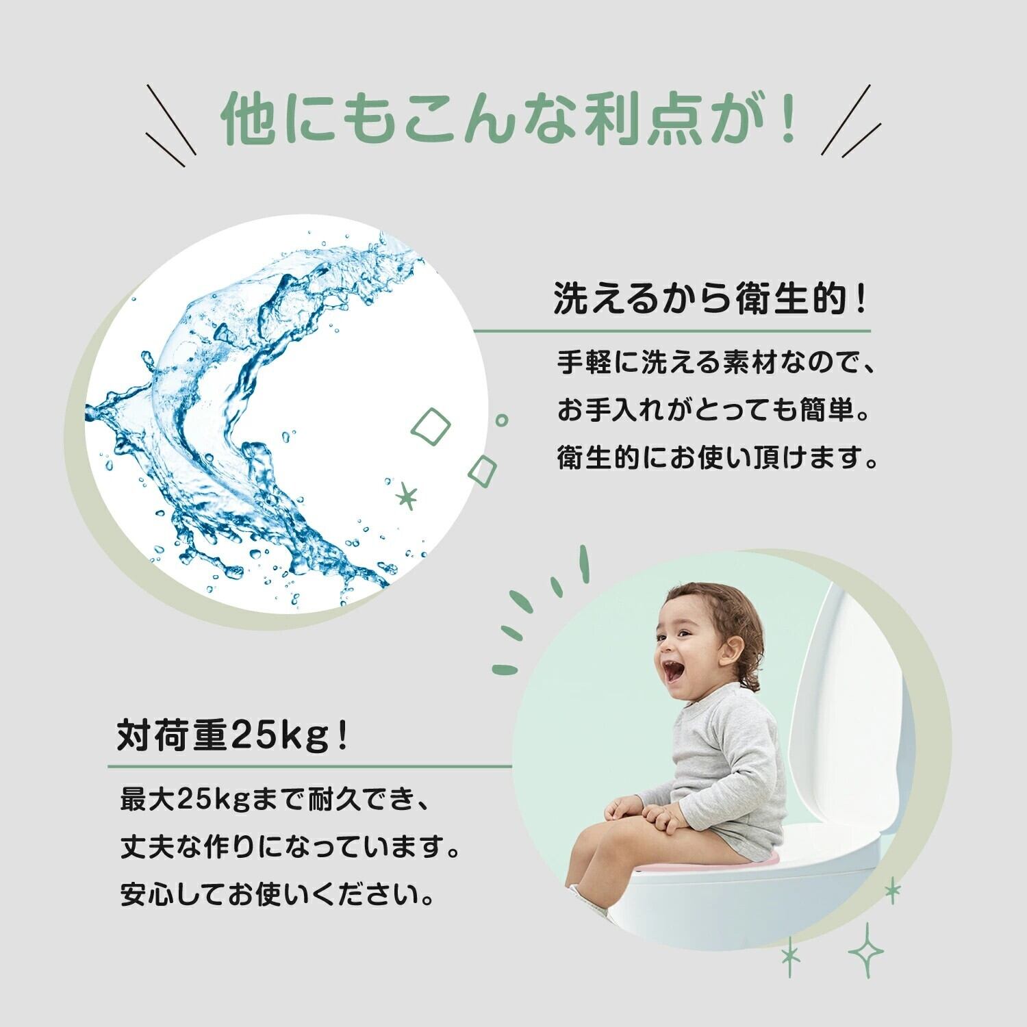かわいい絵柄付きの補助便座なので、お子さまもおトイレタイムが思わず楽しくなるアイテムです。