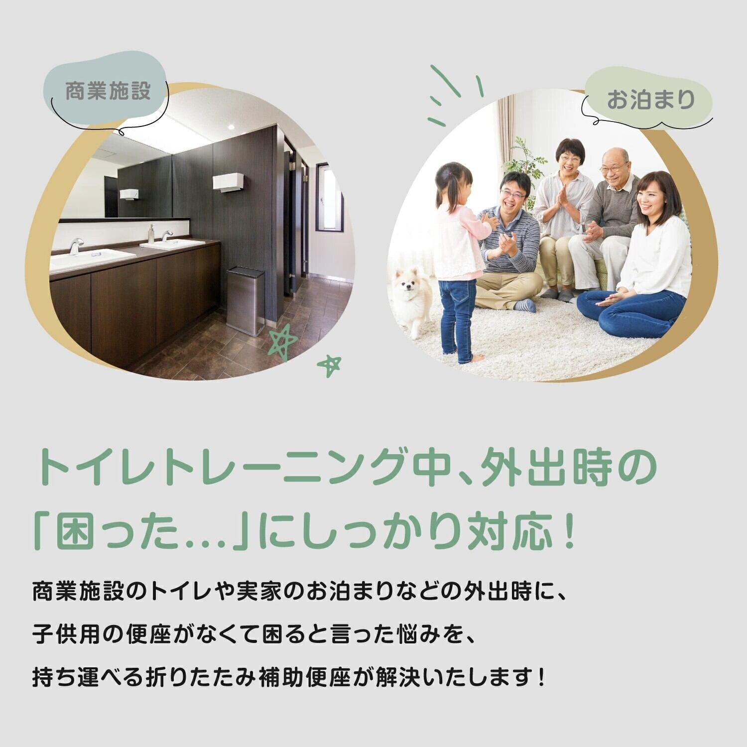大人用の大きなトイレしかない外出時や帰省時などの際、お子さまも安心にご使用いただけます。