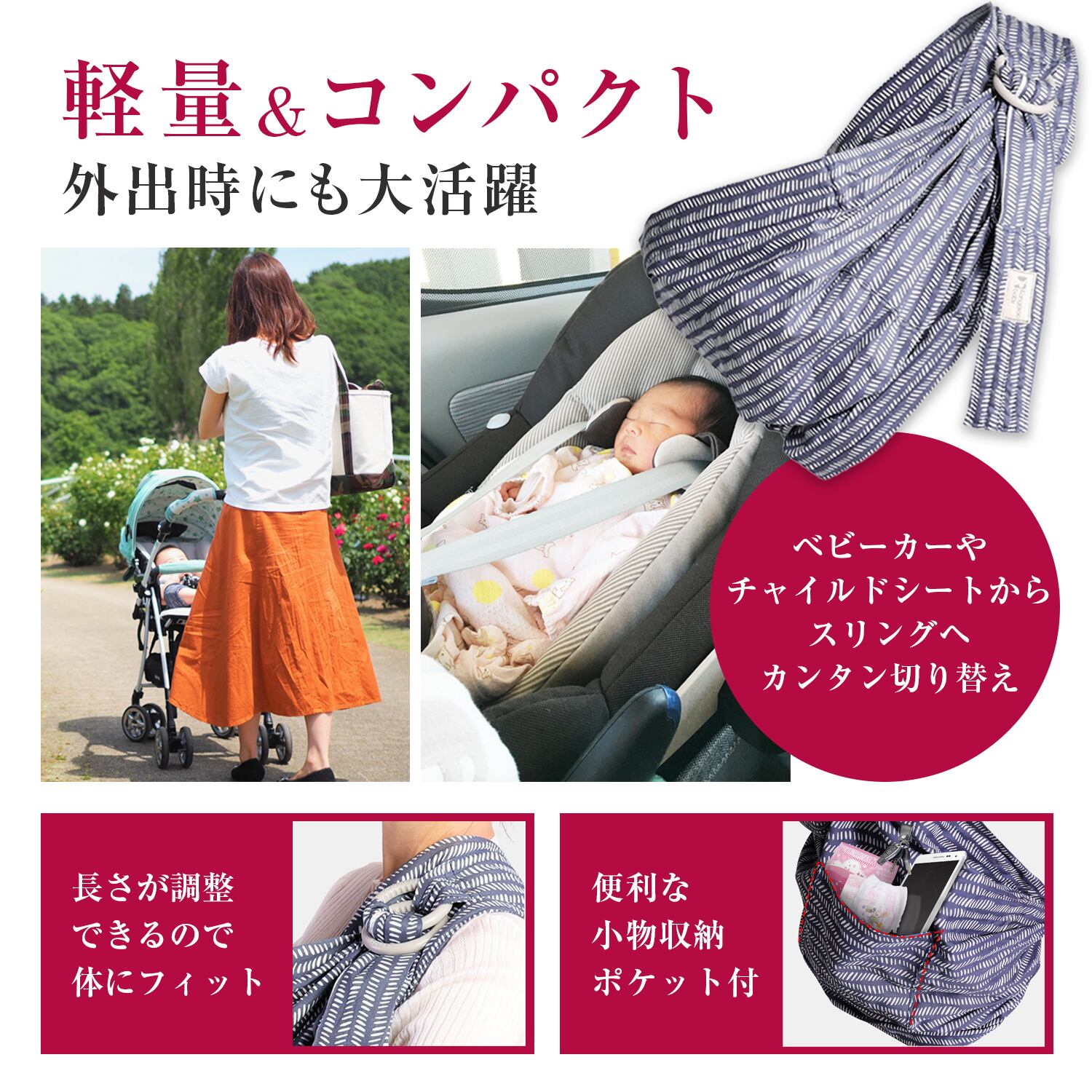 装着も簡単で、ベビーカーからスリングに、チャイルドシートからスリングなど、楽に切り替えがができます。