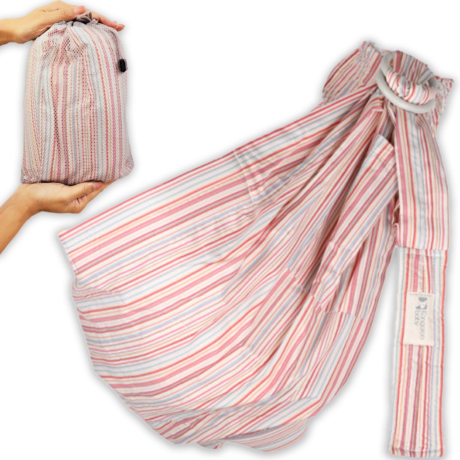 ベビースリング 新生児 抱っこ紐 ベビー抱っこひも ベビーキャリー 赤ちゃん おんぶ紐 メッシュ 100%コットン 軽量 コンパクト ストライプ お出かけ 携帯便利 パパママ兼用 収納袋付き 出産祝い ギフト パパママ兼用 送料無料