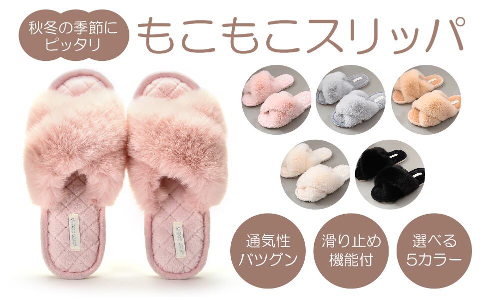 秋冬の季節にピッタリのふわふわのフロアスリッパです。