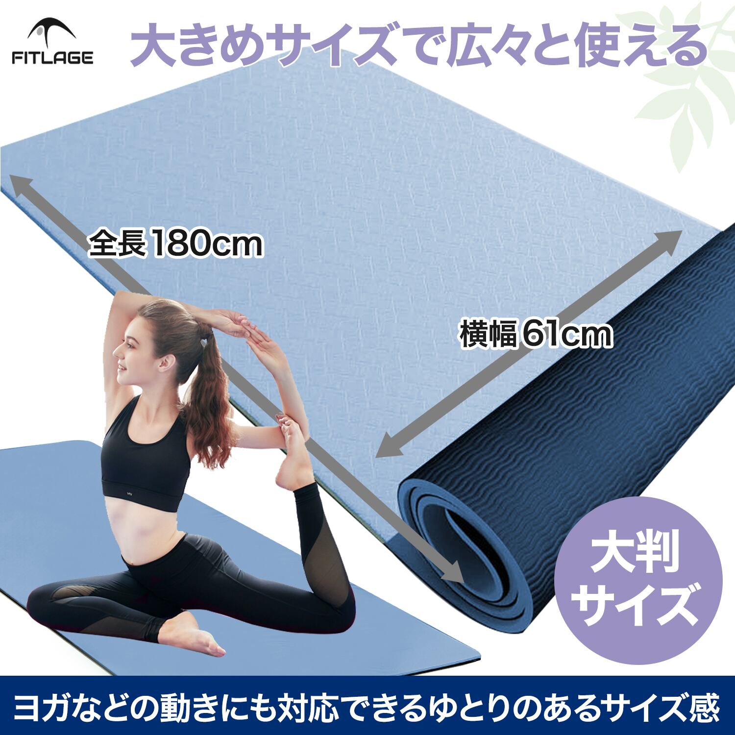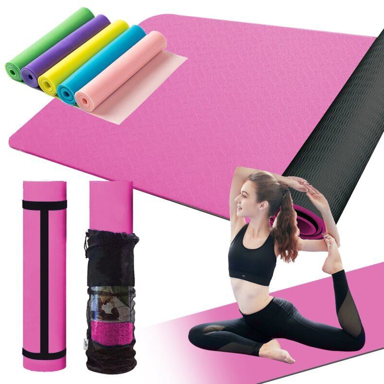 ヨガマット tpe トレーニングマット エクササイズマット ピラティスマット フィットネスマット ストレッチマット 大判 厚手 6mm TPE 室内運動 リバーシブル 軽量 両面の滑り止 持ち運び 収納袋付き 送料無料