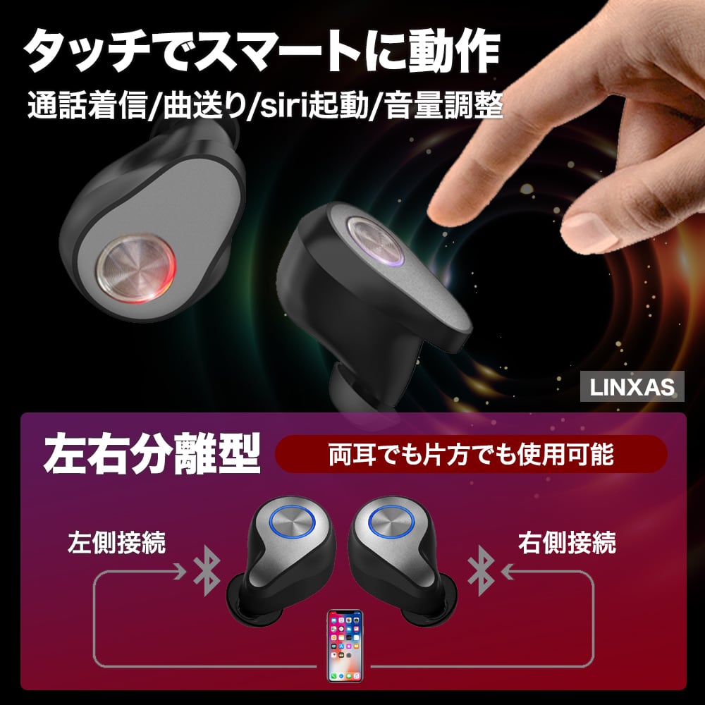 左右分離型タッチ式ワイヤレスイヤホン