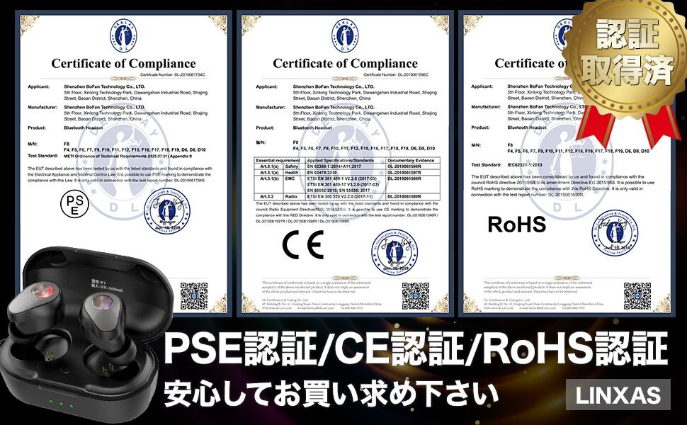PSE認証、CE認証、RoHS認証