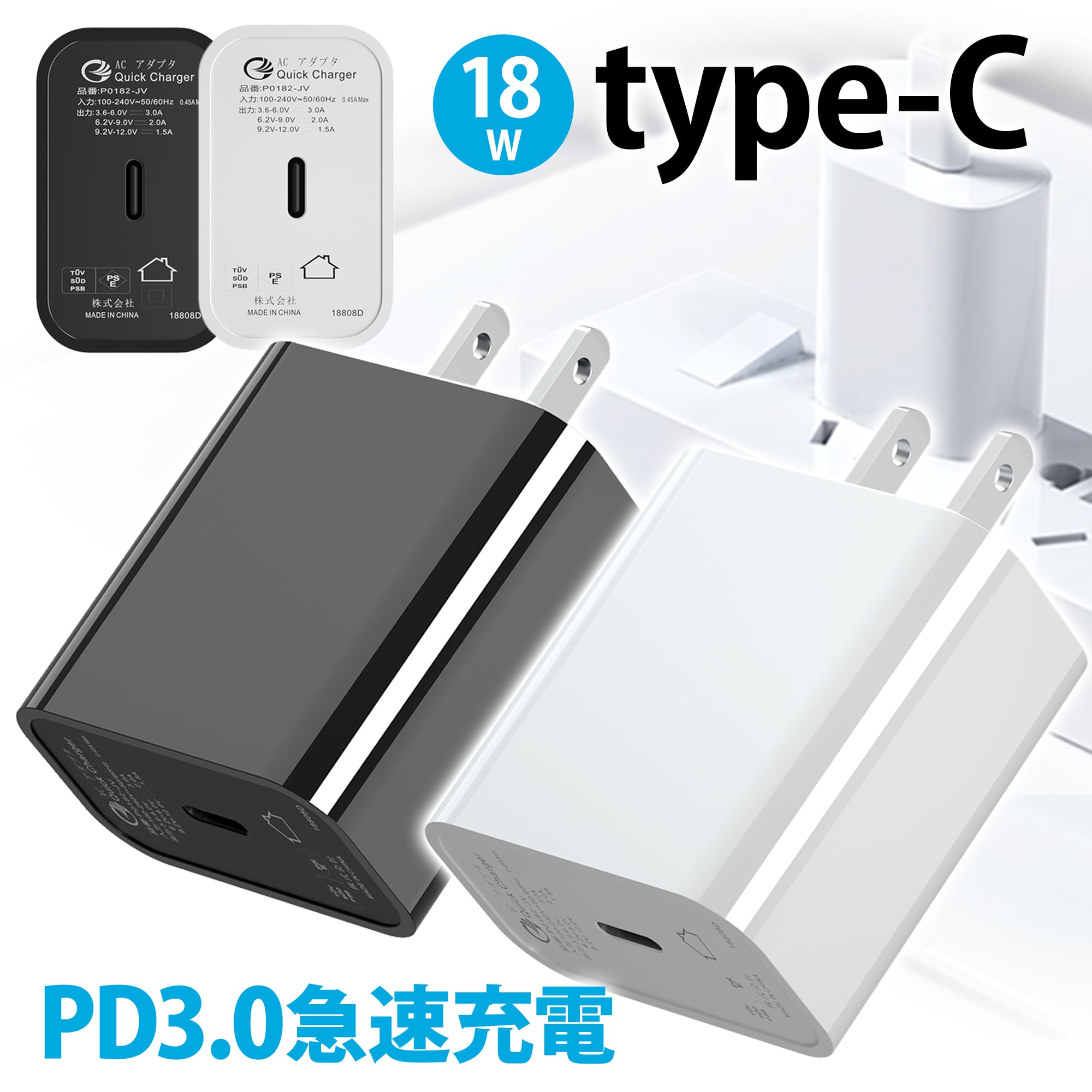 USB TypeC 急速充電器 (USB-C) iPhone充電器 PD 充電器 スマホ充電器【PSE認証済/PD&QC3.0対応 18W/ USB-Cポート】電源アダプター AC充電器 USB タイプc コンセント アダプタ Charger 高速充電器 クイックチャージ 3.0 USB Type-C ポート用