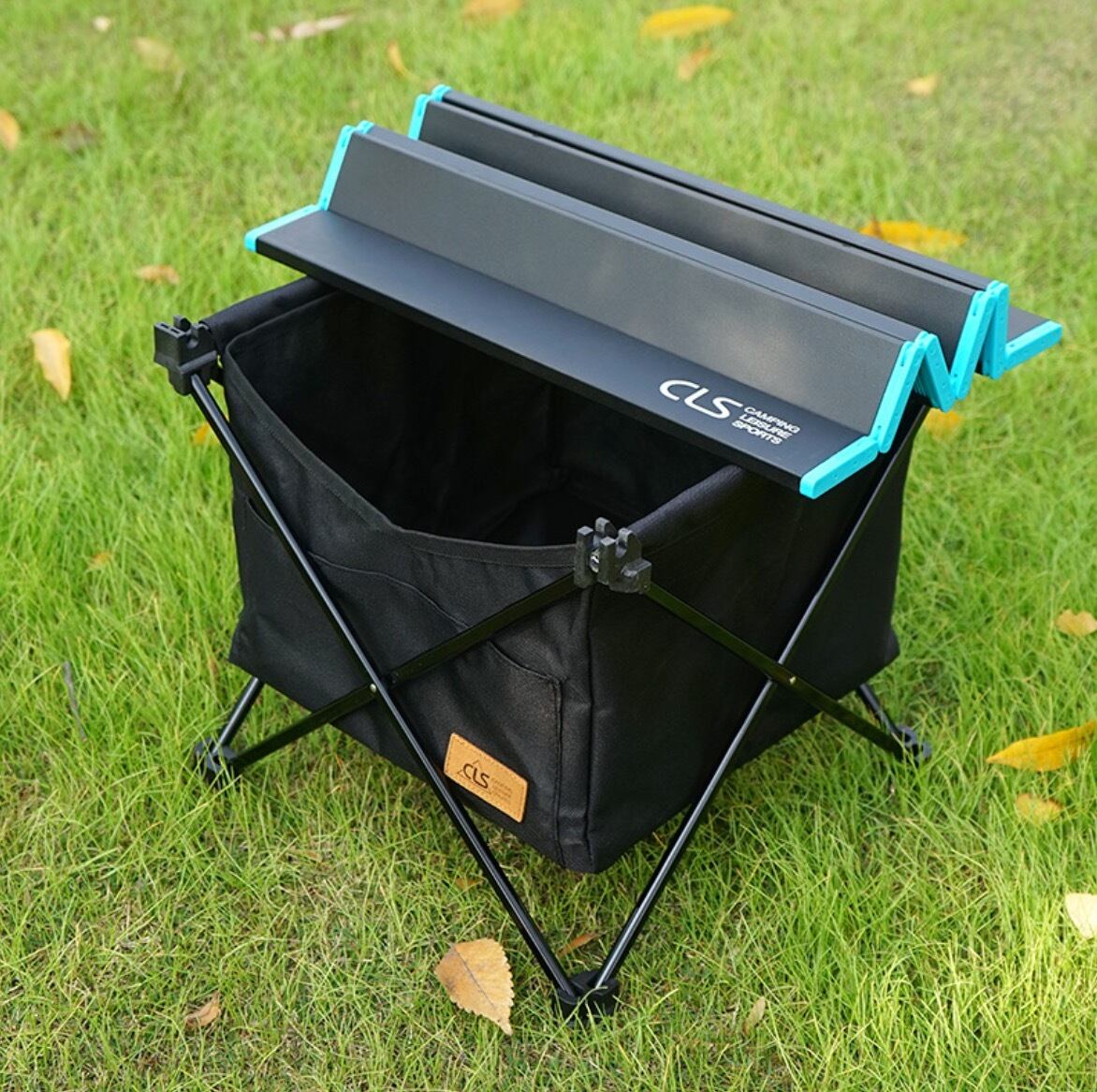 テーブルの天板の下に収納スペースのあるキャンプテーブルです。