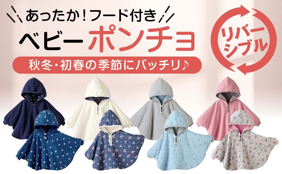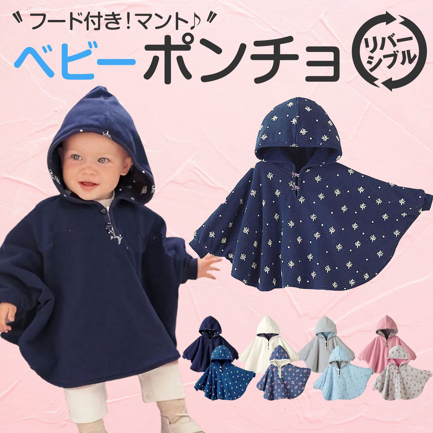あったか リバーシブル ベビーポンチョ ベビー ポンチョ マント アウター ベビー 子供用 コート ブランケット 出産祝い ギフトに 人気 誕生祝い