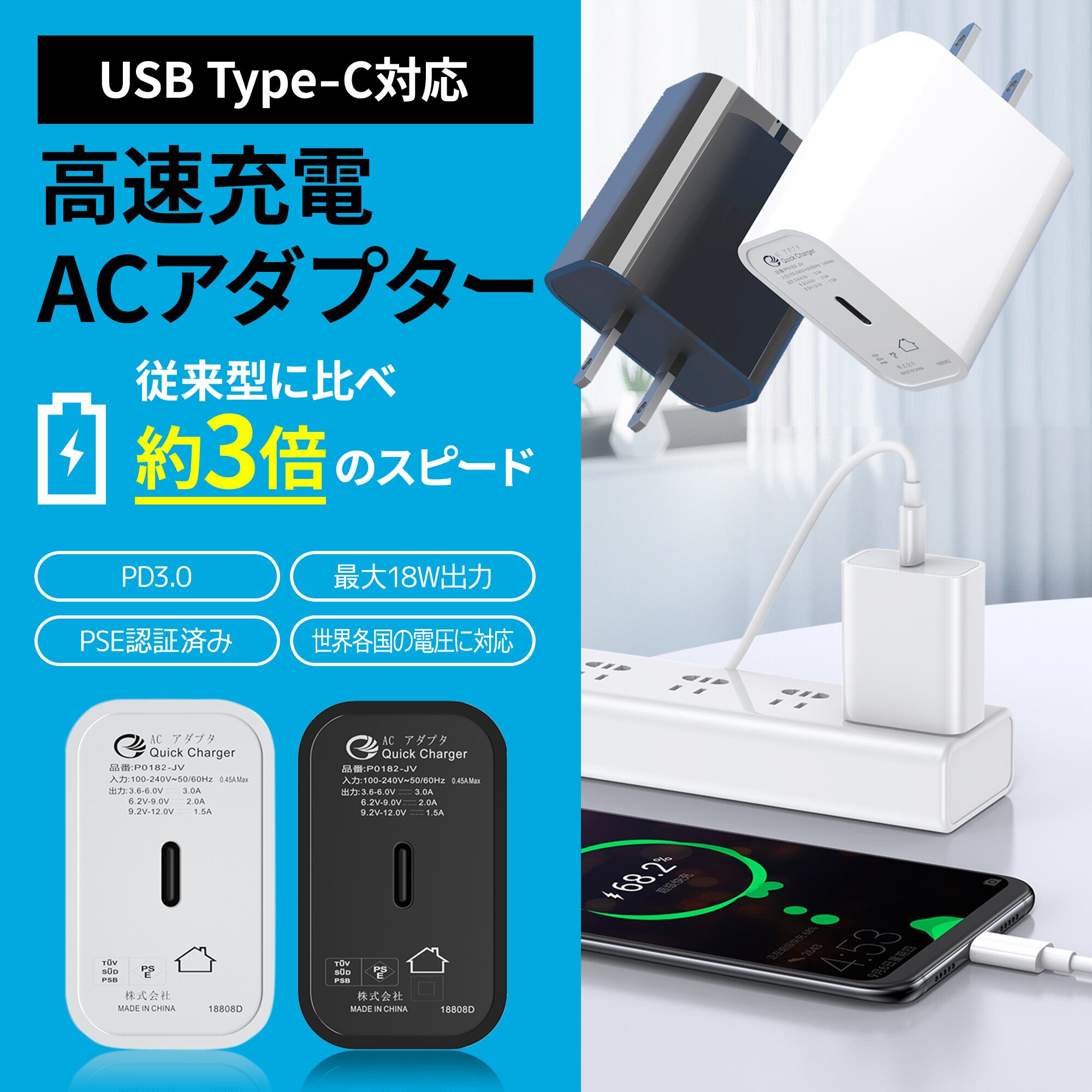【TypeCアダプター+Lightning type Cケーブルセット】TypeC 急速充電器 Lightning type C ケーブル 3本 セット iPhone充電器 PD 充電器 【PSE認証済/PD&QC3.0対応 18W】電源アダプター AC充電器 タイプc コンセント アダプタ Charger 高速充電器 クイックチャージ 3.0 ポート用