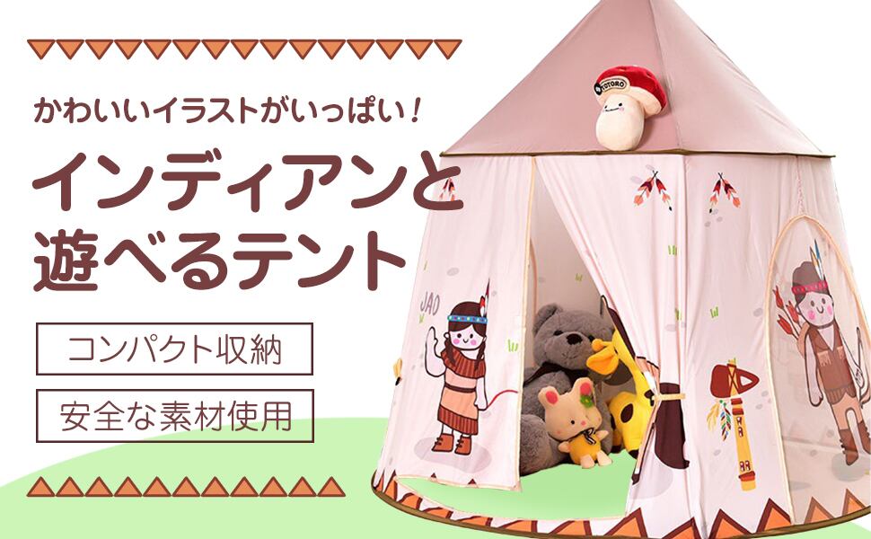 【商品仕様】〇バリエーション インディアン柄 〇サイズ 収納時:タテ45cmxヨコ45cm 使用時:高さ123cm,幅116cm 〇素材:6Pグラスファイバー、ピーチスキン 〇セット内容:本体、ポール、収納バッグ ※画像内のぬいぐるみなどのおもちゃは付いておりません。