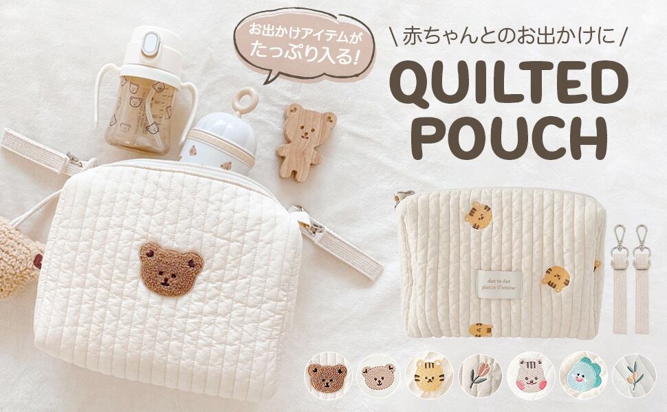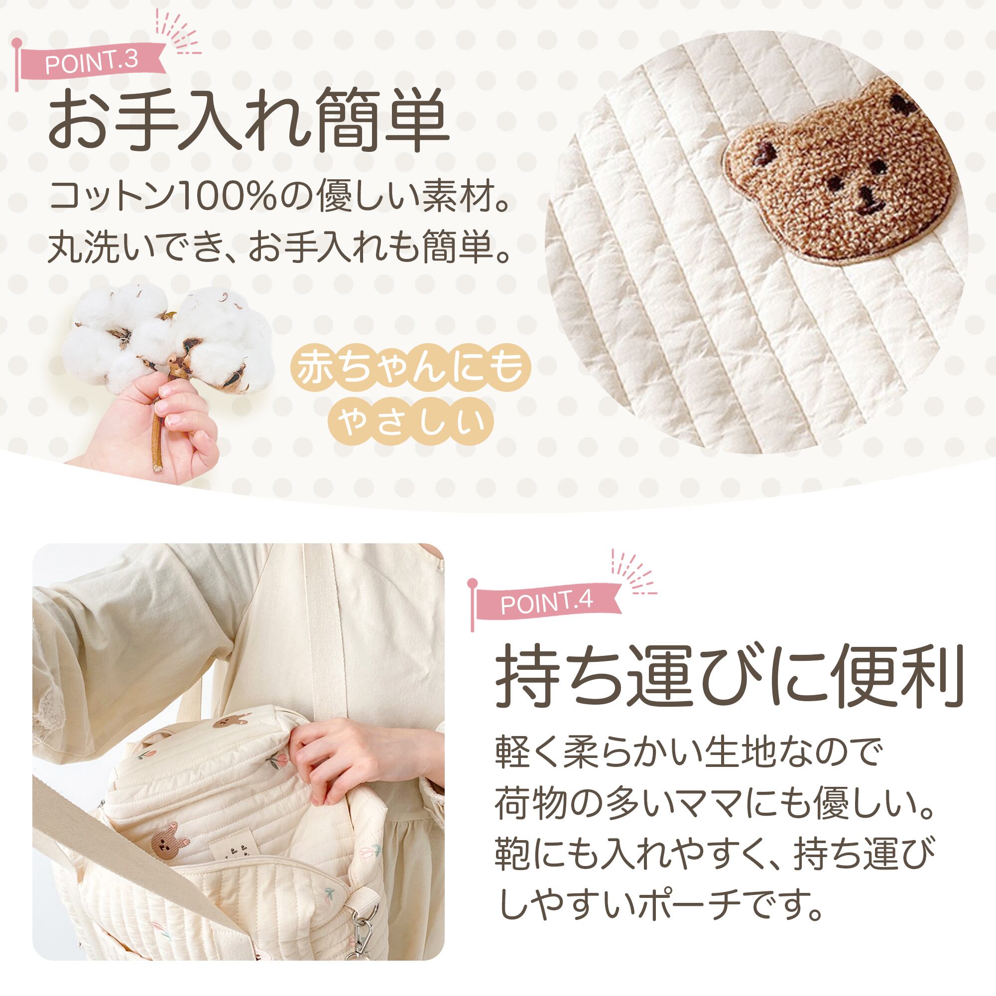 お子様とのお出かけに必要なアイテムを収納したり、旅行の時のサブポーチ、メイクポーチなど様々な用途に対応できます。汚れた際は丸洗いができるので、常にきれいな状態をキープできます。